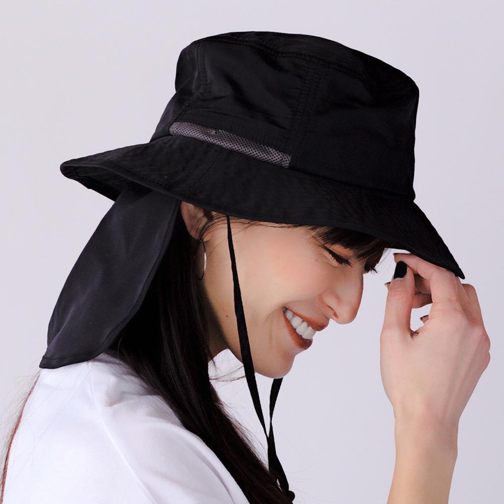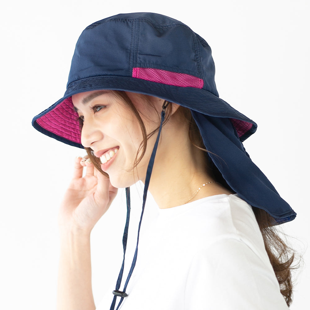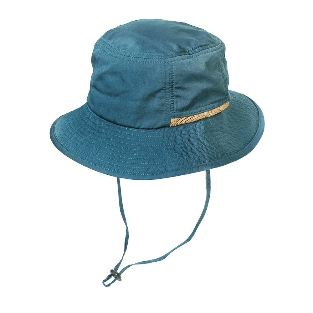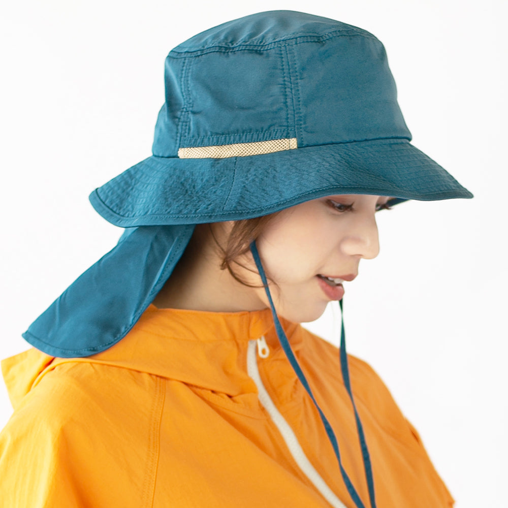 UV加工、撥水加工を施した機能性に優れたサファリハット。撥水に優れたポリエステル素材ですが、サイドに通気ポケットが付いていますのでとても爽やかな被り心地です。あご紐は共布タイプと柄タイプが付いていますので、お好みでご使用いただけます。首やけ防止の収納式マントもついてUV対策もバッチリ!柔らかい素材感でコンパクトに折りたたんでの持ち運びにも便利です。