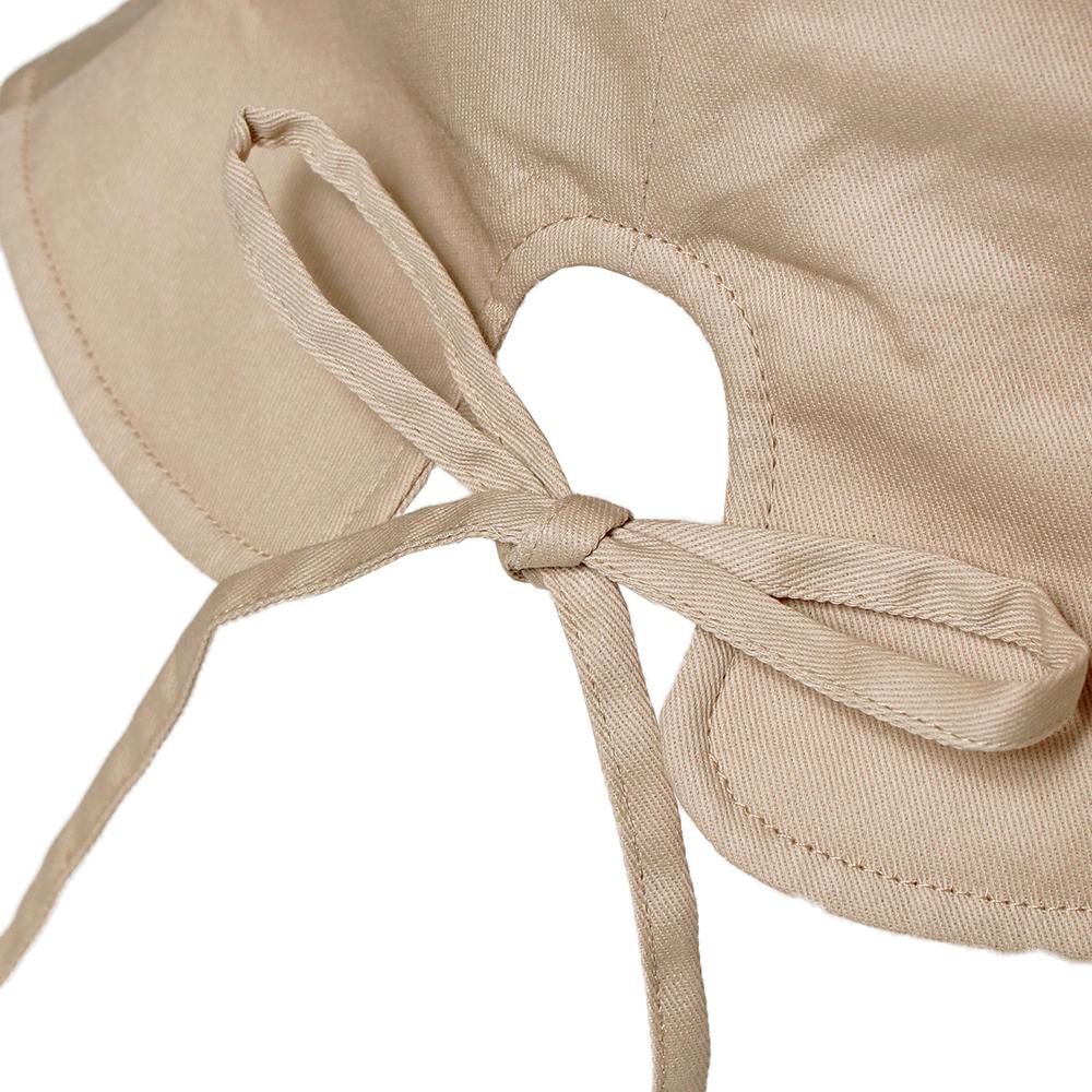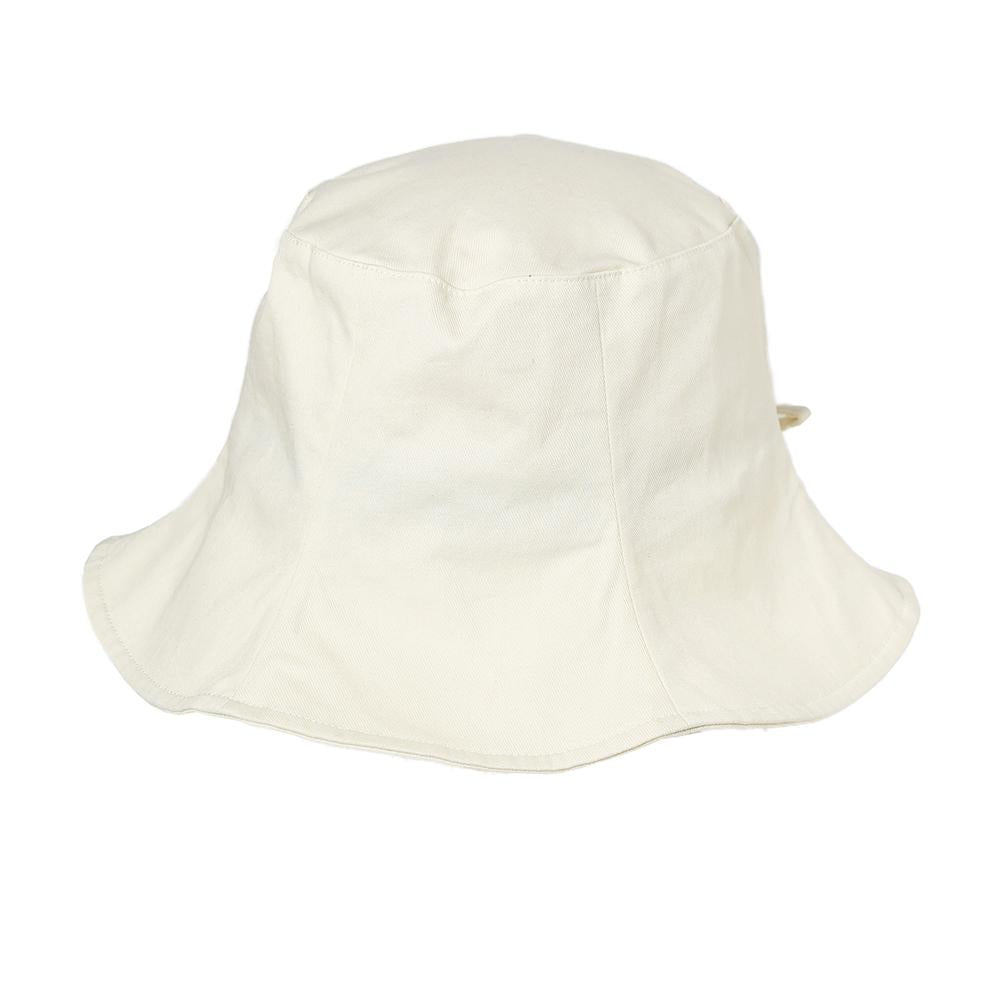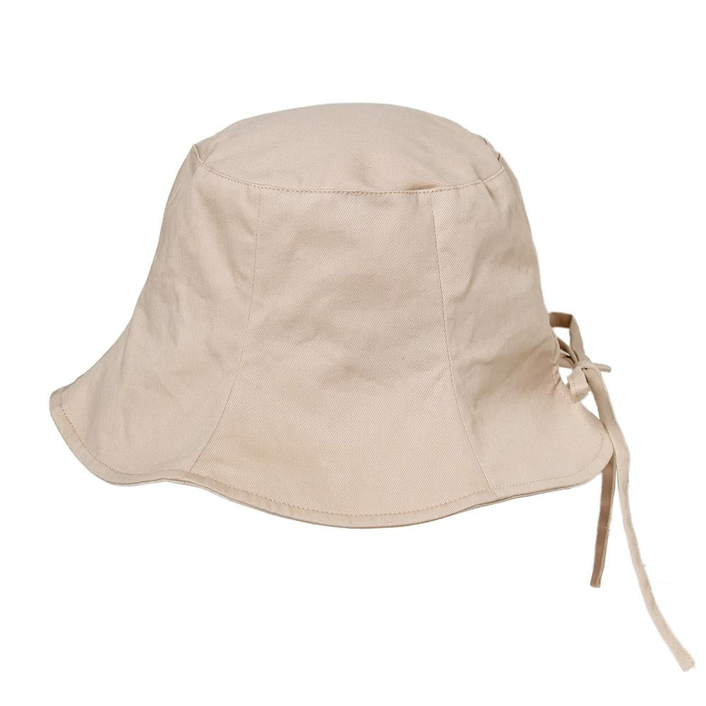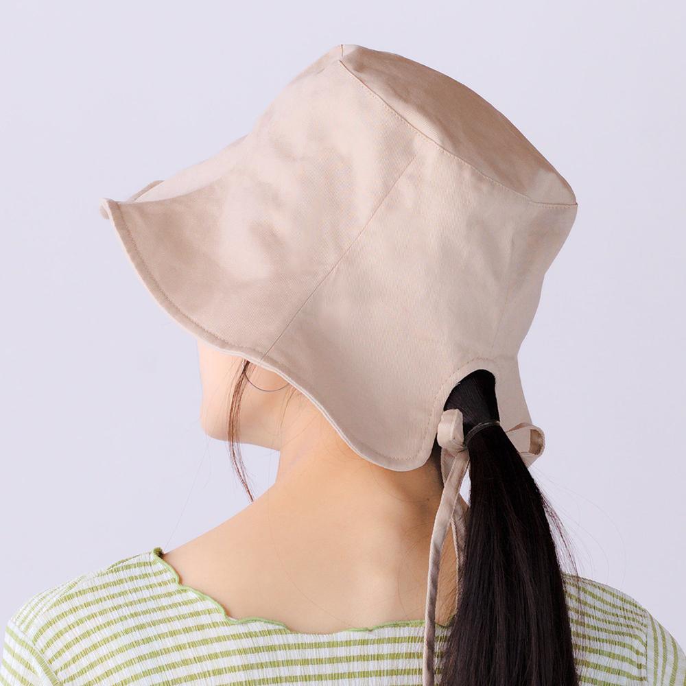 チューリップ型のシルエットが可愛いナチュラルなハットです。後ろ部分は紐で結ぶ仕様になっていて、後ろで髪を結んだヘアスタイルでもストレス無く被ることができるのも嬉しいポイント。内側にあるすべりの裏側には、サイズを調節して頂けるテープが付いていますのでご自分のサイズ感で被って頂けます。