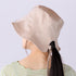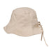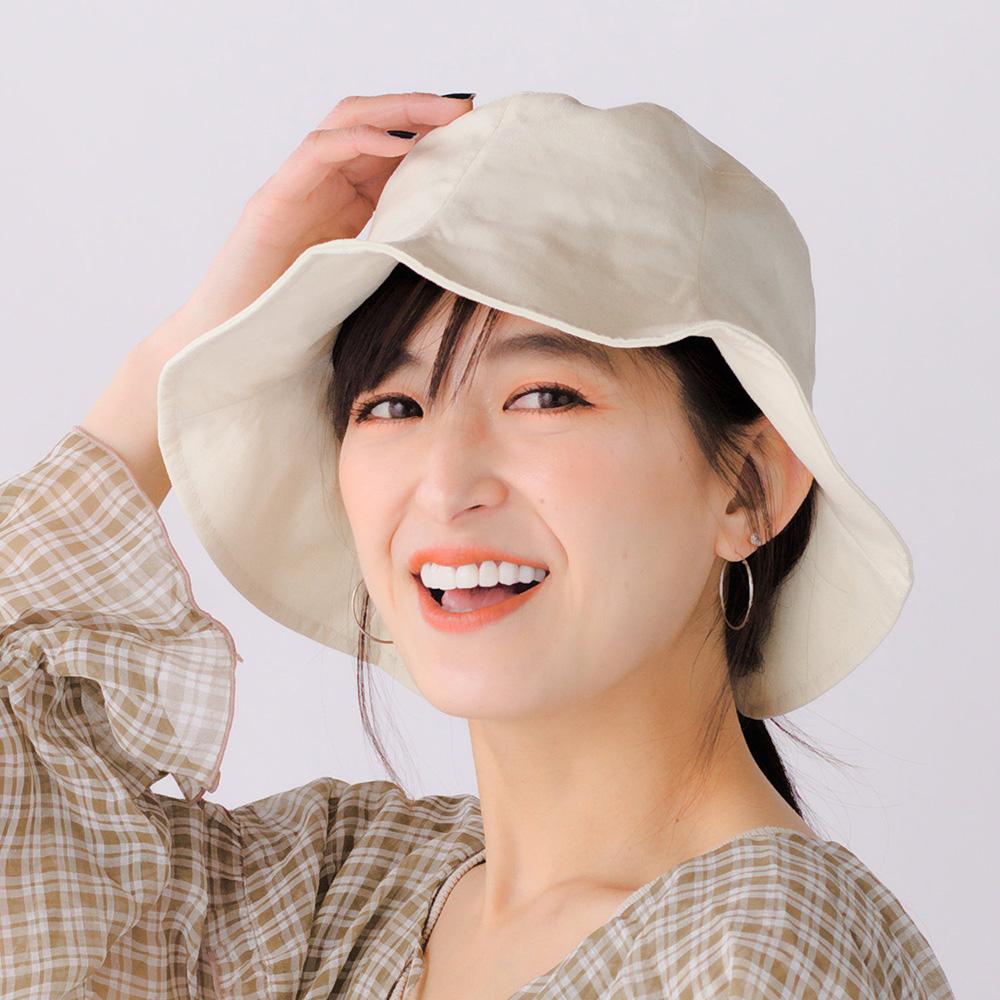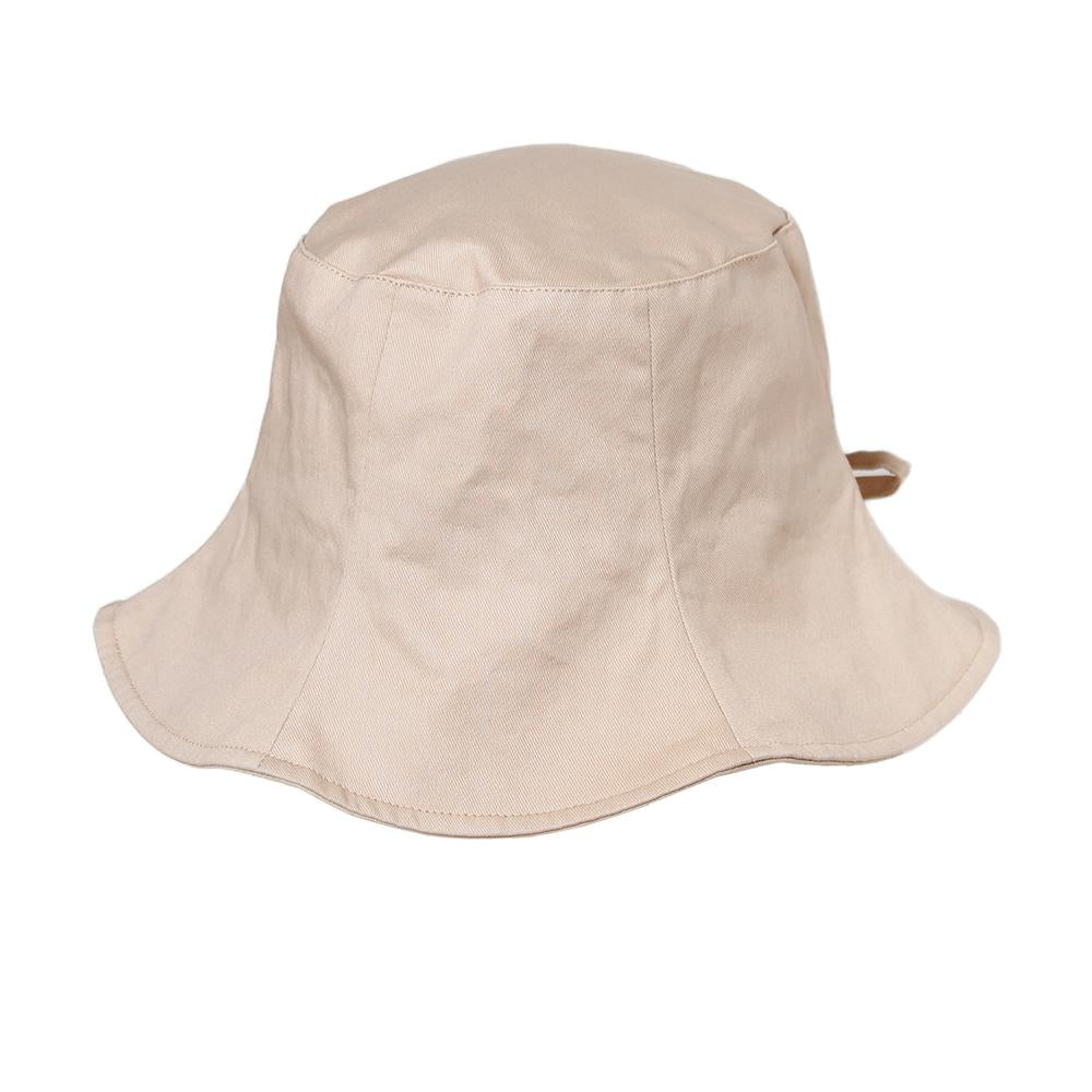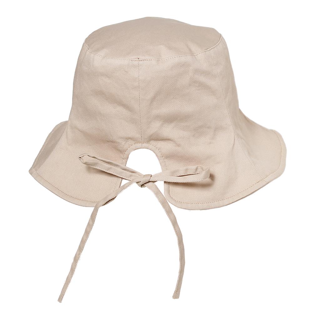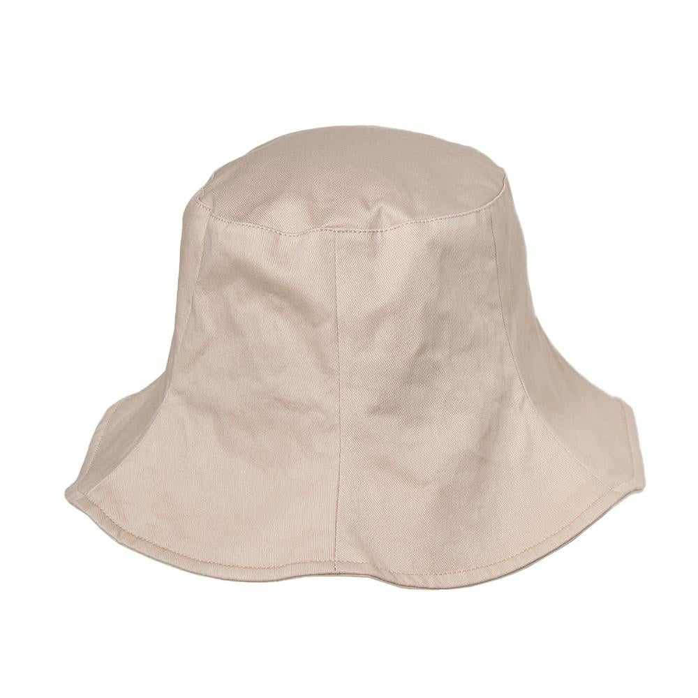 チューリップ型のシルエットが可愛いナチュラルなハットです。後ろ部分は紐で結ぶ仕様になっていて、後ろで髪を結んだヘアスタイルでもストレス無く被ることができるのも嬉しいポイント。内側にあるすべりの裏側には、サイズを調節して頂けるテープが付いていますのでご自分のサイズ感で被って頂けます。