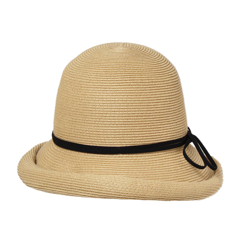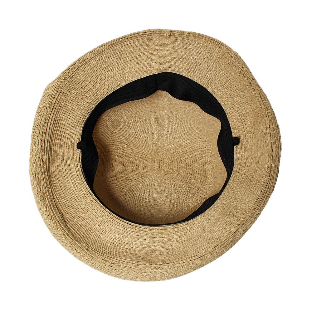 上品なブレード編みとスエード調のリボンがオシャレなブルトンハットです。リボンは細めの紐タイプなので、カジュアルスタイルなど幅広いコーディネートに合わせていただきやすいデザインです。内側にあるすべりの裏側には、サイズを調節して頂けるテープが付いていますのでご自分のサイズ感で被って頂けます。