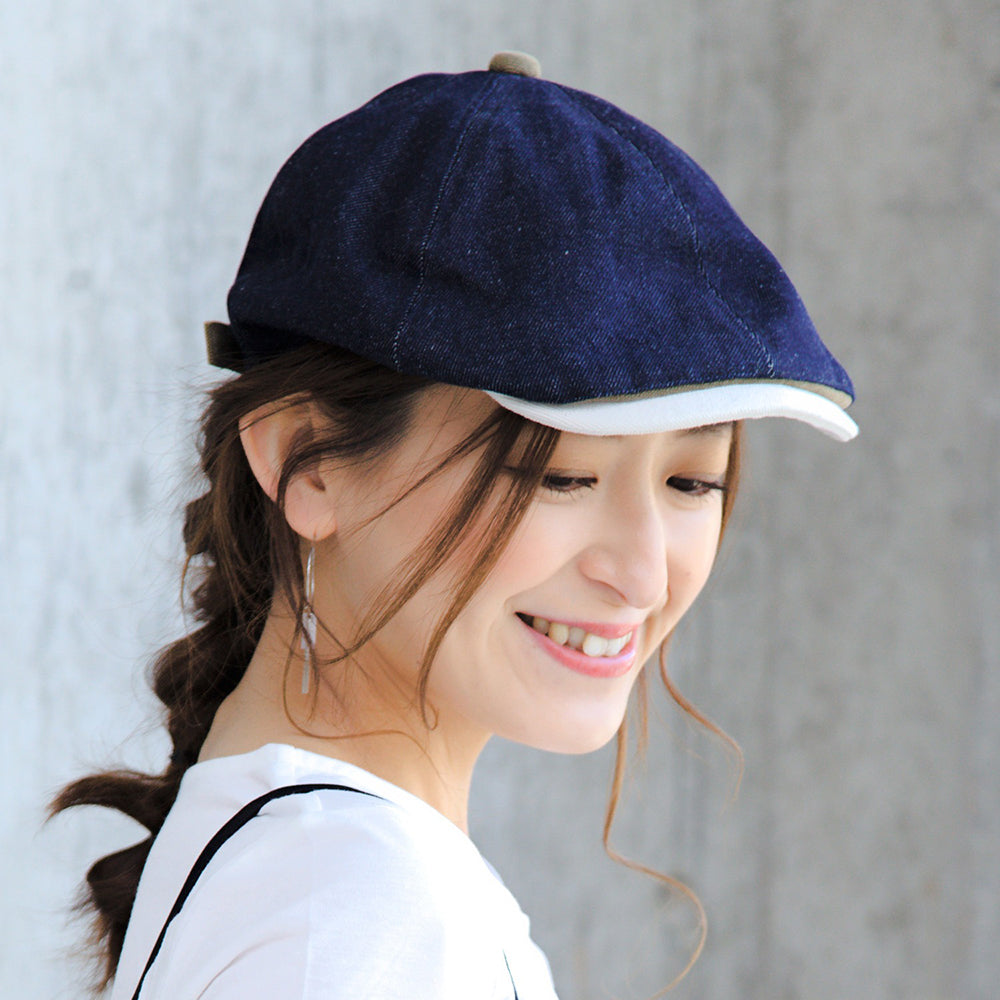 つば部分とベルト部分の配色が可愛いデニムハンチングのBIGサイズが登場しました!