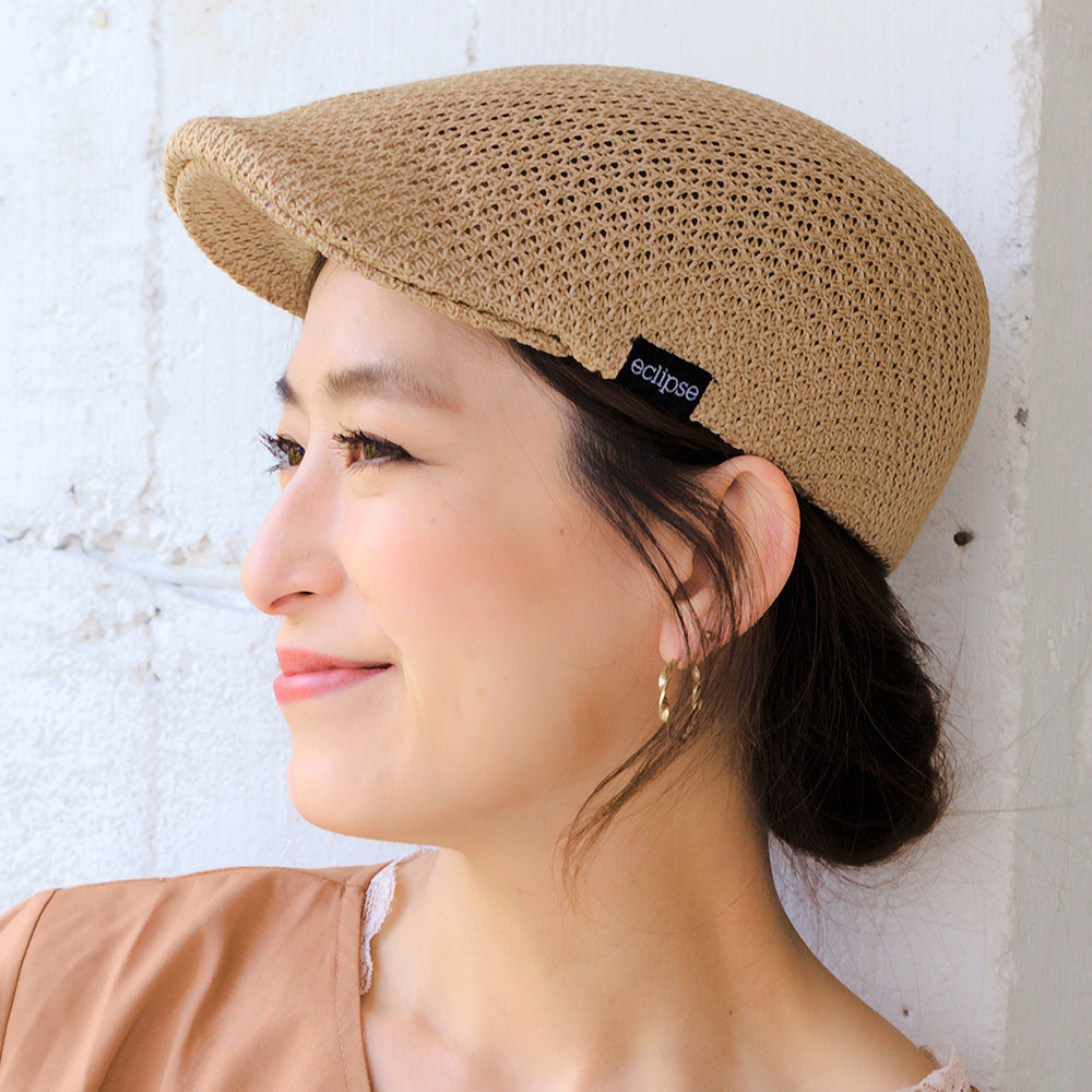 透かし編みで通気性も抜群。軽くて見た目も涼しげなメッシュハンチングです。ポリエステル素材でしっかりしているので、型崩れしにくい仕上がりです。無地、単色のシンプルなデザインだから、コーデとの合わせ方も自由自在。いつものコーデを邪魔せず、お洒落をワンランクアップしてくれます。帽子本体は柔らかく、長時間被っていてもストレスを感じにくいアイテムです。