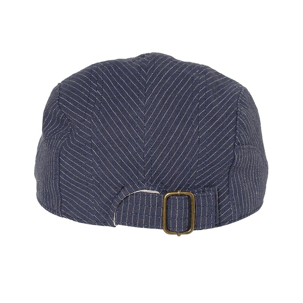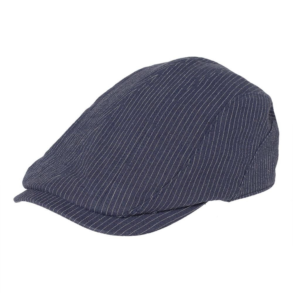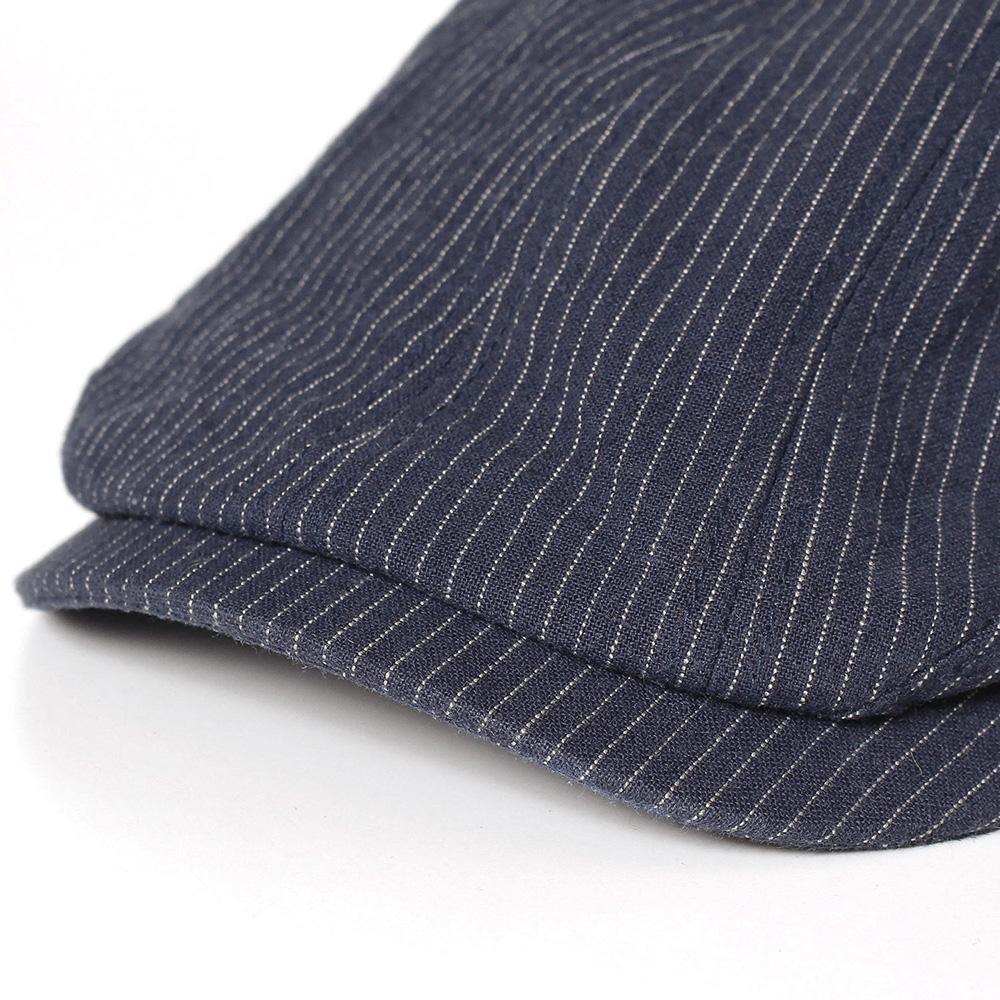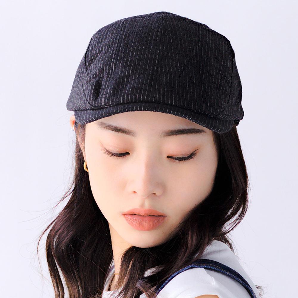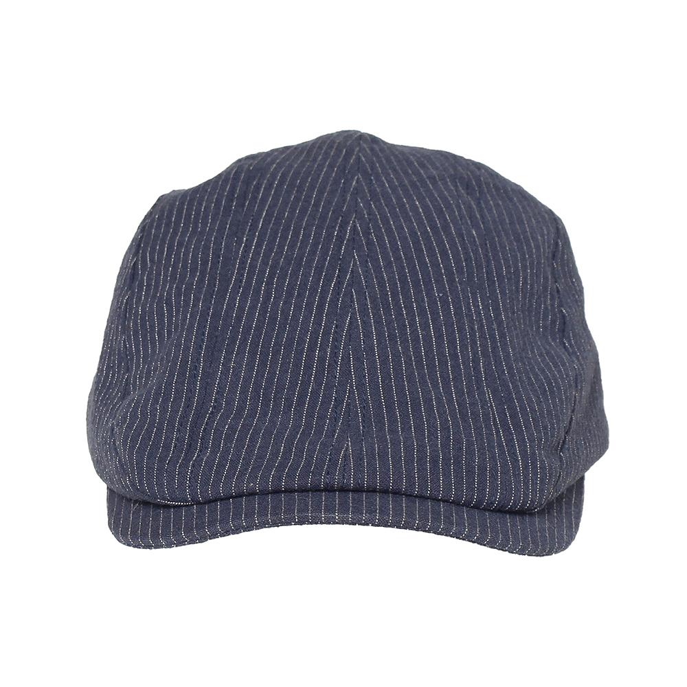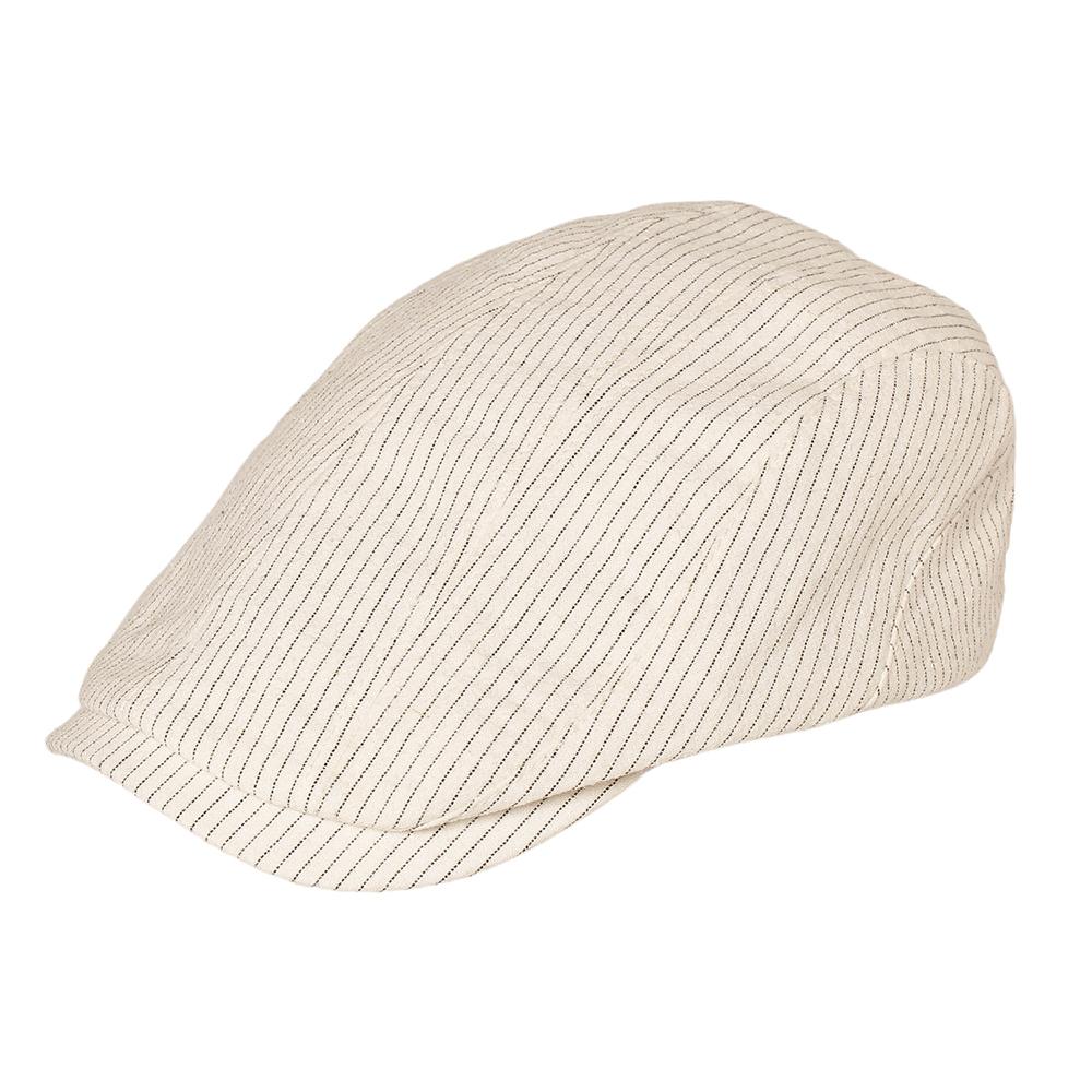 ストライプ柄のリネン素材が爽やかなハンチングです。ベーシックなシルエットでいろいろなコーディネートに合わせやすい。バックのベルトで若干のサイズ調節も可能です。