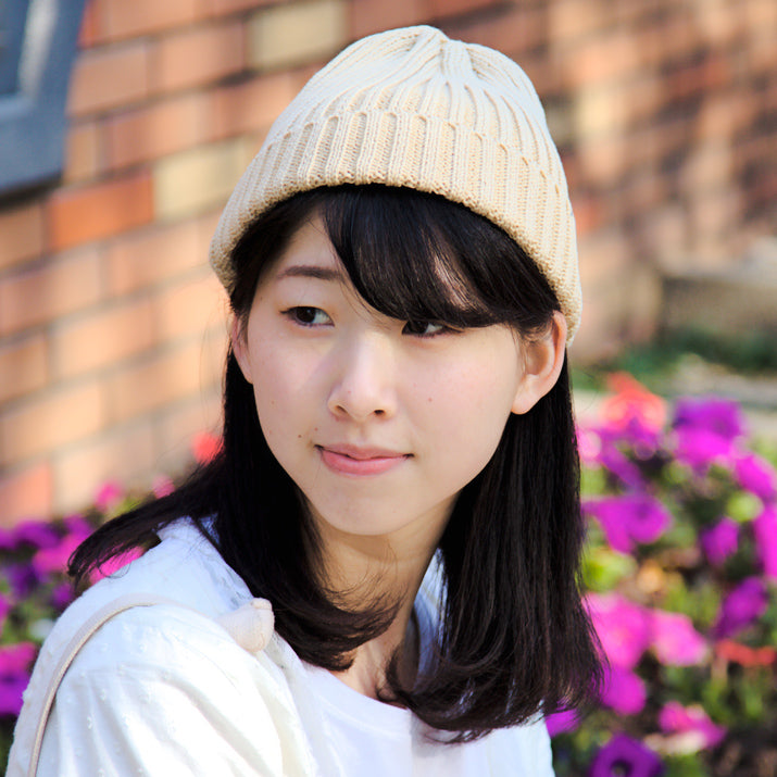 国産コットン100%。安心できる、優しい肌触りの春夏ニット帽です。シンプルなリブ編みに、折り返しのデザインで程よいボリューム感。帽子は伸縮性が高く、締めつけ感が少なく被って頂けます。深く被ればワッチ風。浅めに被ればツノが立って可愛いシルエットに。柔らかなカラーで、ガーリーコーデからメンズのストリートファッションまで、何でも似合うアイテムです。
