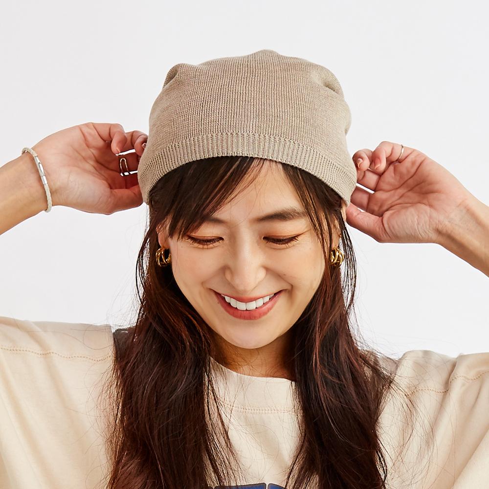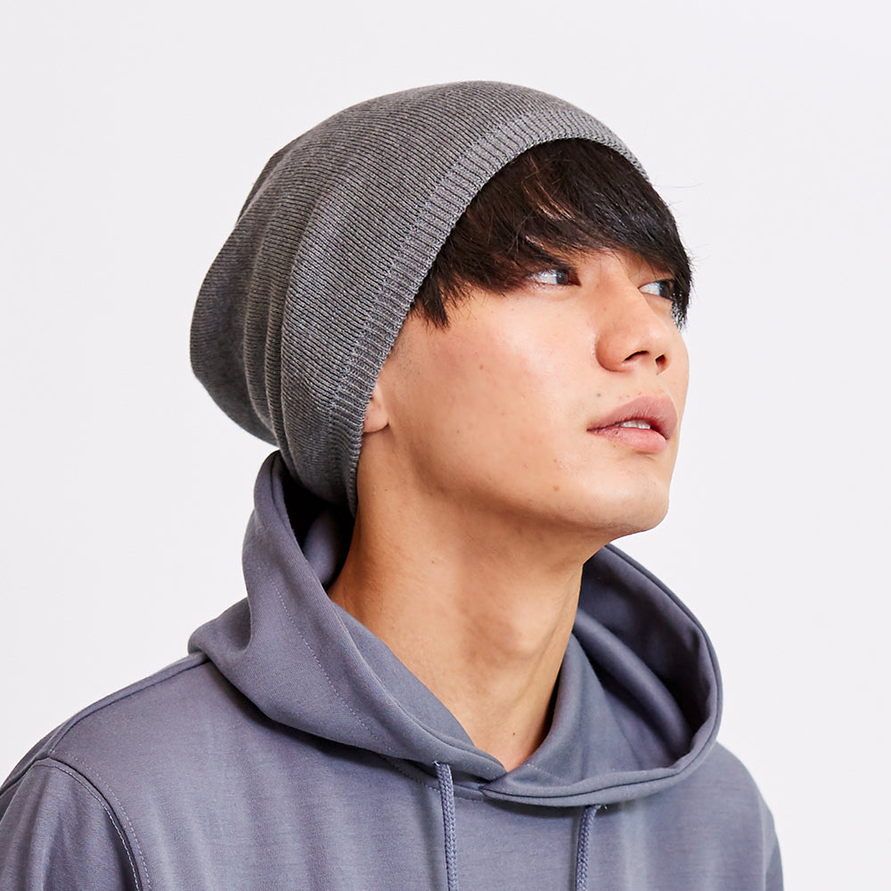 被り心地が優しく、環境にも配慮したニット帽が登場しました!再生繊維を代表する素材のリサイクルポリエステルを使用し、抗菌繊維、抗紫外線繊維も含まれていますので衛生的に被っていただけ、日中の紫外線から頭皮を守る効果もあります。