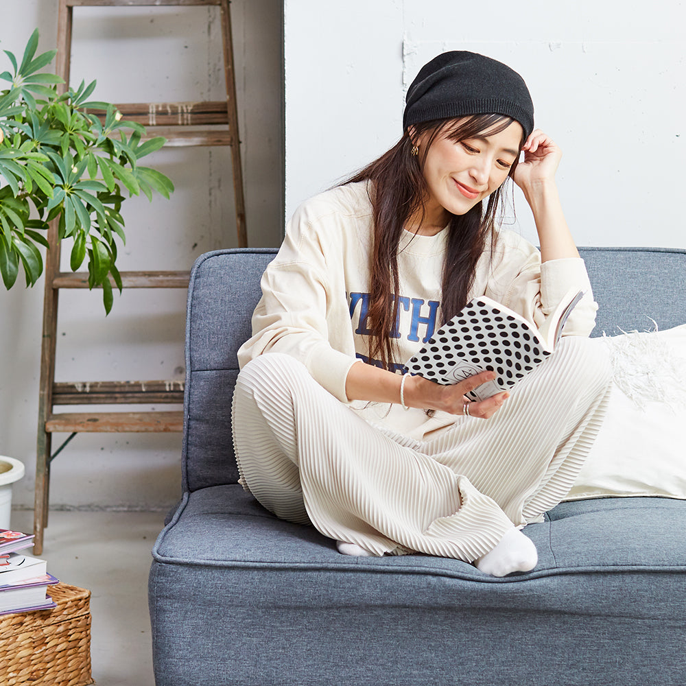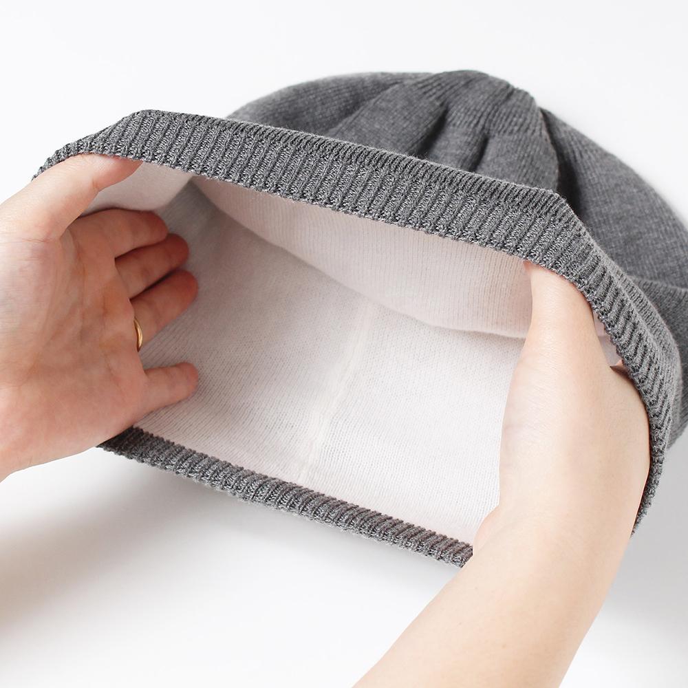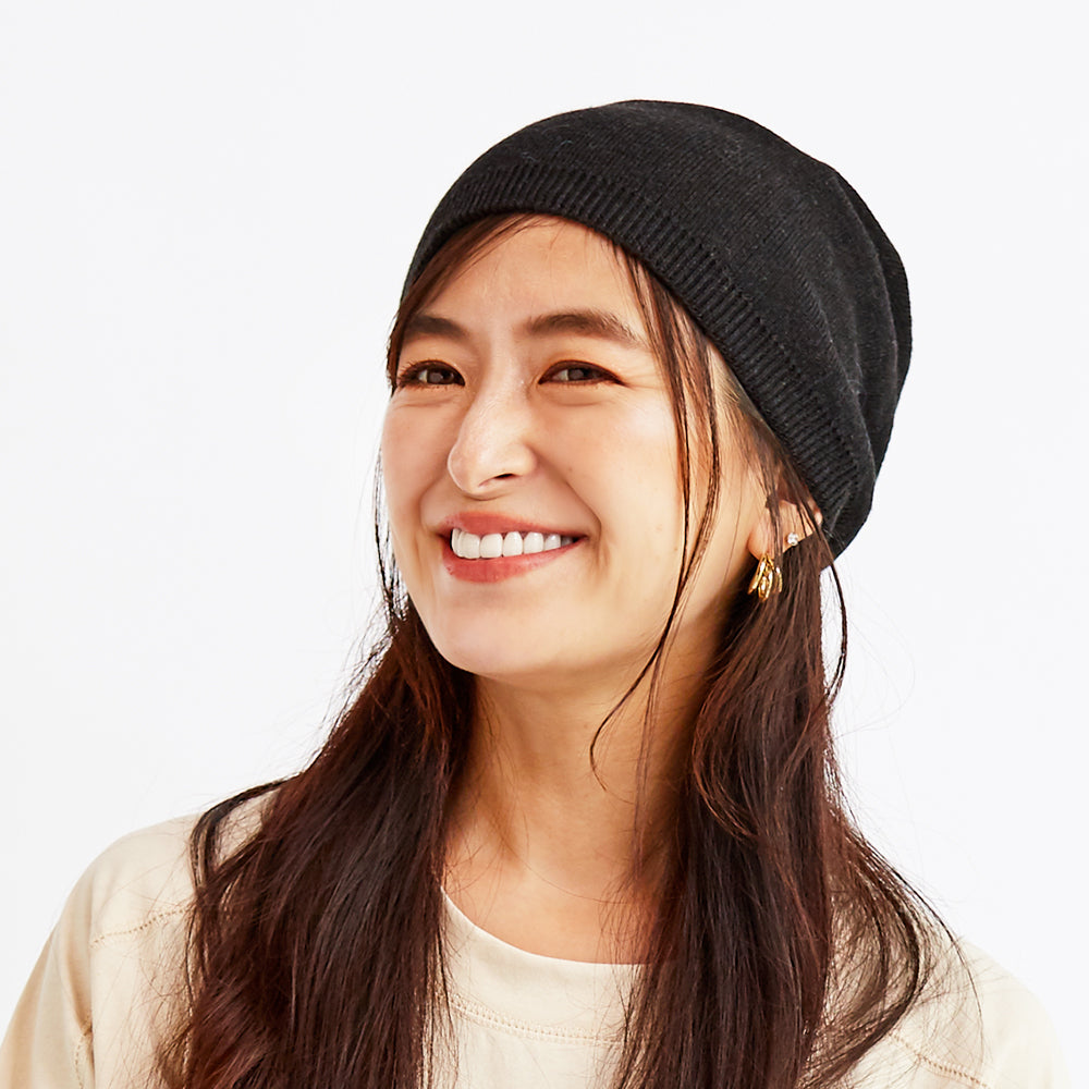 裏地には柔らかなオーガニックコットンを使用し、寝ている間の髪の摩擦を軽減してくれるのでナイトキャップとしてもお使いいただけます。もちろん洗濯機で丸洗いもできますので、いつでも清潔に保つことが可能です。普段使いはもちろん、ナイトキャップ、お家時間の防寒対策など幅広い用途でお使いいただける機能的にも優れた心地よいアイテムです。サイズのM、Lサイズからお選びいただけますので、ご自身に合った被り心地で被っていただけます。※濃い色のニット帽は洗濯の際に色落ちの可能性がありますので、単体洗い、また風合いを保持するためにネットに入れての洗濯をおすすめ致します。