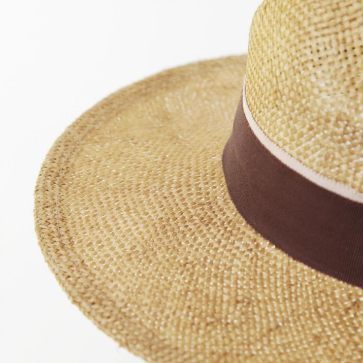 リボン帯がバイカラーの配色になった、つば広の中折れハットです。麻100%のナチュラルな風合いがとても夏らしいアイテムです。通気性に優れ、蒸れにくく爽やかな被り心地。サイズ調節も可能なので、ぶかぶかせずフィットしますので安定感があります。