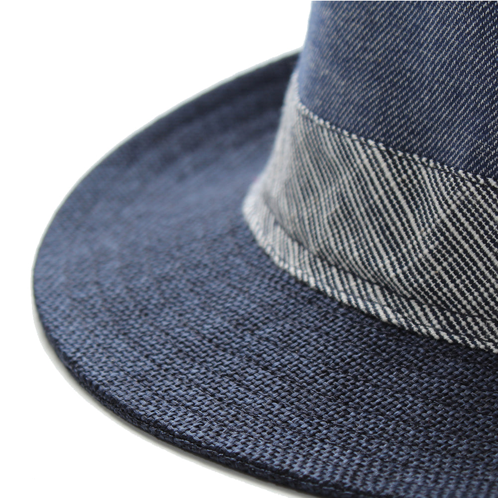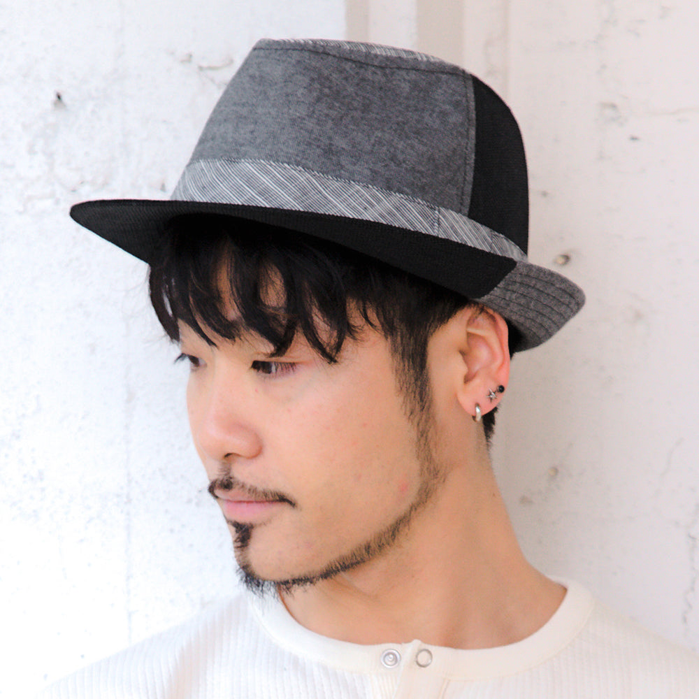 インディゴ素材がパッチワークになったおしゃれな中折ハット。奇抜になり過ぎず、合わせやすくもありますので、普段のコーデにプラスするだけで程よいおしゃれなアクセントになります。サイズもM、L展開、さらにサイズ調整も可能なので、頭に合ったサイズ感で被って頂けます。