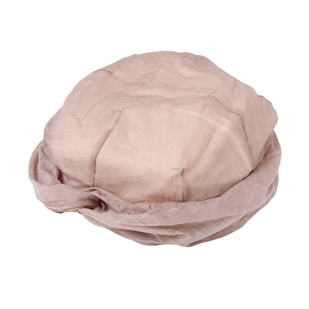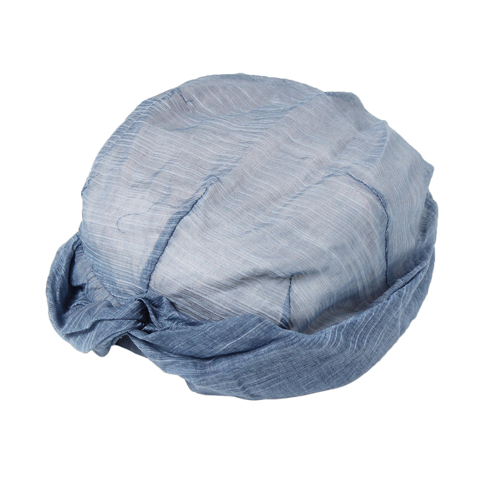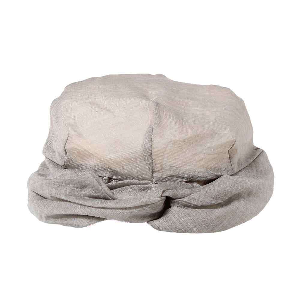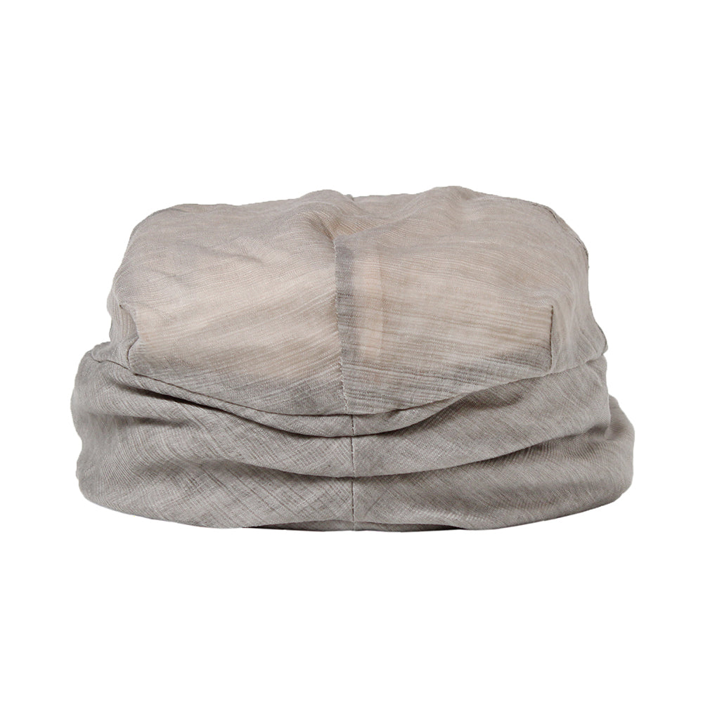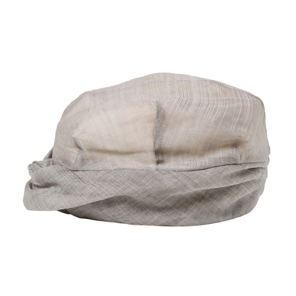 トーク帽のようなシルエットが大人可愛い室内帽です。コットンやリネン混の柔らかい素材感で、優しい被り心地。生地はシフォンのように透け感があるので、上品でクラシカルな印象です。頭部はギャザーを効かせたシルエットがこだわりを感じさせるデザインです。