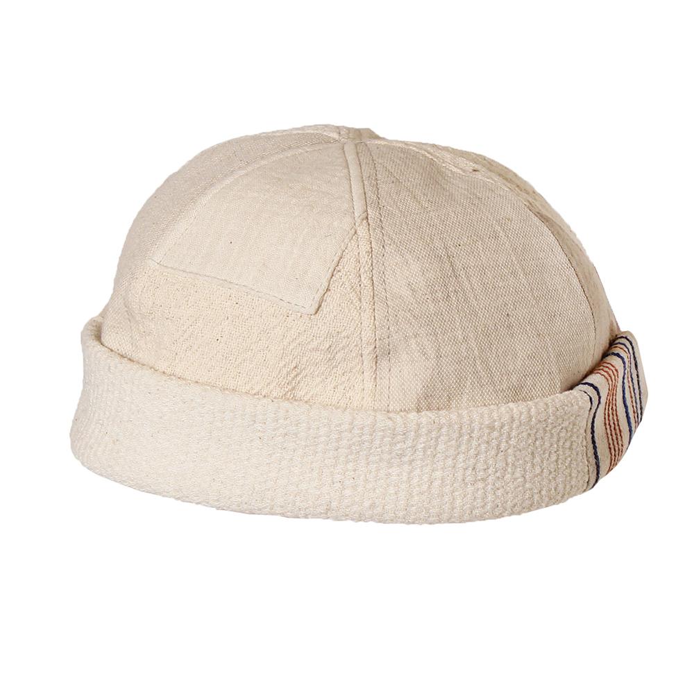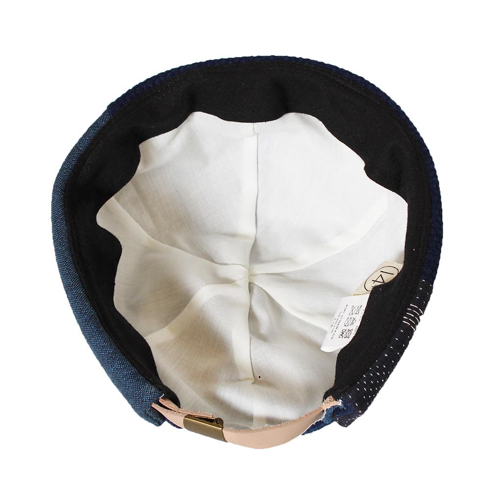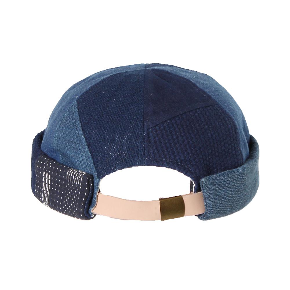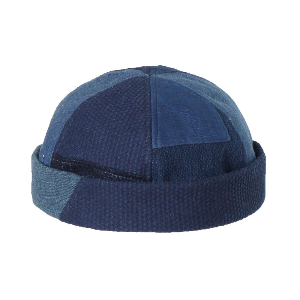 漁師のために作られた帽子、フィッシャーマンキャップの型をベースに、お洒落にアレンジされたカジュアルキャップ。様々な生地感のコットン素材を組み合わせたパッチワークデザインがポイントです。色合いはワントーンで統一されたデザインなので、個性的なのに合わせやすい!サイズ調節部分を前に被ってもコーデのアクセントになり、とてもお洒落です。