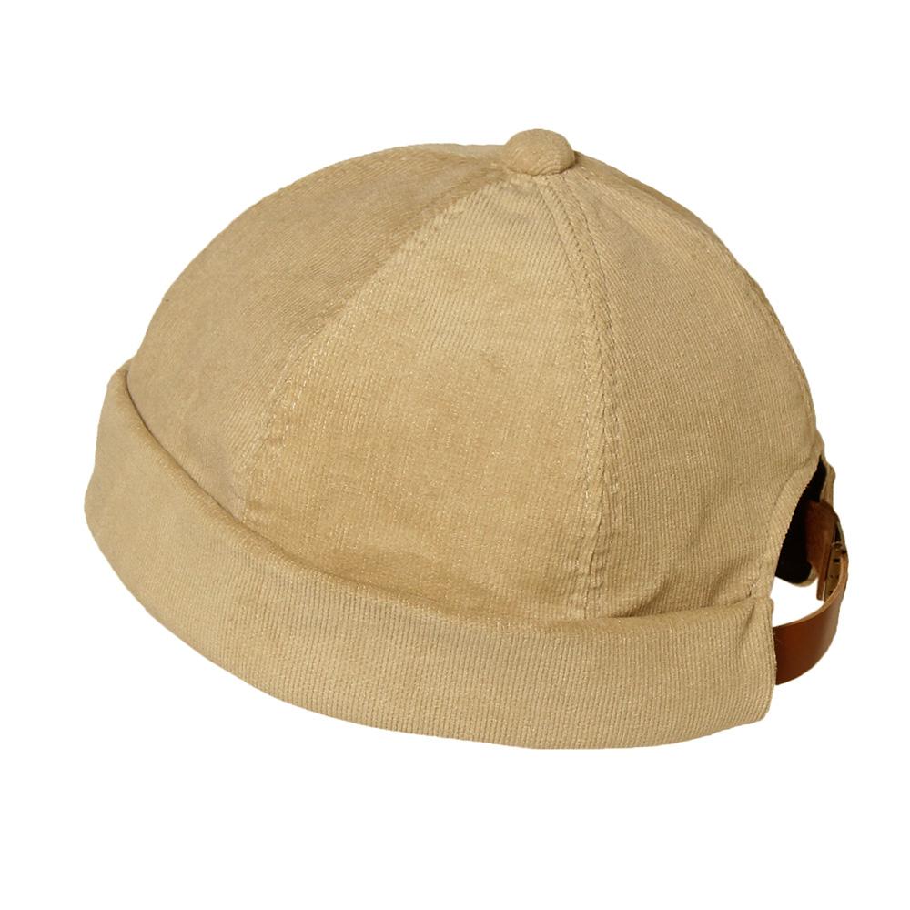 漁師のために作られた帽子、フィッシャーマンキャップの型をベースに、お洒落にアレンジされたカジュアルキャップ。細めのコーデュロイ素材で秋冬コーデに嬉しいデザインです。後ろのサイズ調節部分は合皮とアンティーク調の金具を使用して、お洒落な印象に。サイズ調節部分を前に被ってもコーデのアクセントになり、とてもお洒落です。
