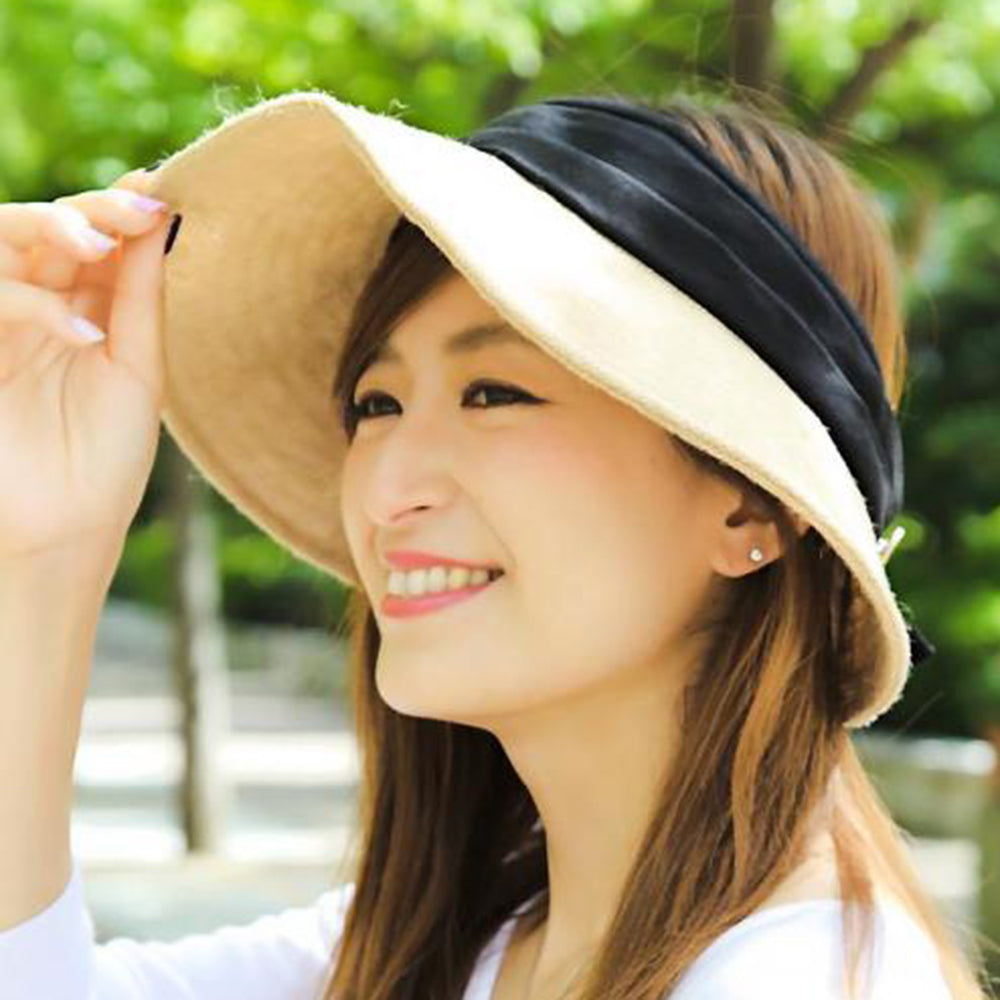日差しが強くなる季節に必ず持っておきたいお洒落サンバイザーです。持ち運びの時にはくるくると丸めて小さく出来ますので、とても便利です。