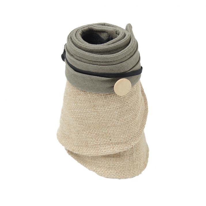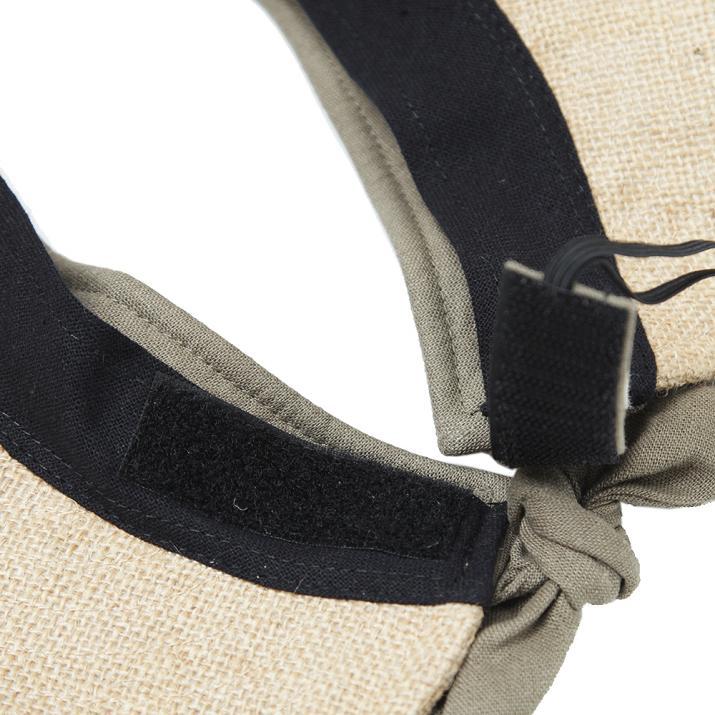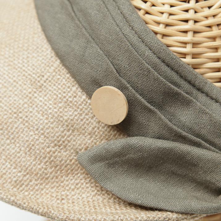 ジュート素材が見た目にも爽やかで、サイドの木調ボタンがナチュラルで優しい印象。カジュアルはもちろん、きれい目なイメージでも合わせられる万能アイテムです。