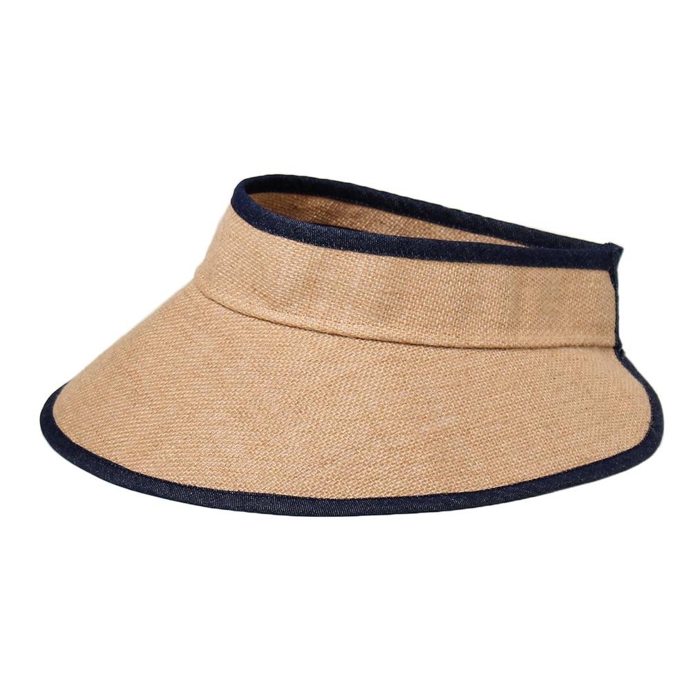 日差しが強くなる季節に必ず持っておきたいお洒落サンバイザーです。つばが広く、紫外線をしっかりカット!ジュート素材100%の夏にピッタリの爽やかなデザイン。持ち運びの時にはくるくると丸めて小さく出来ますので、とても便利です。