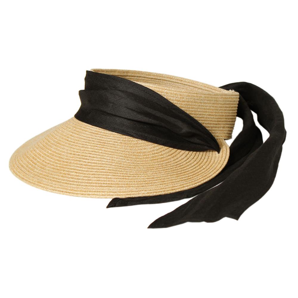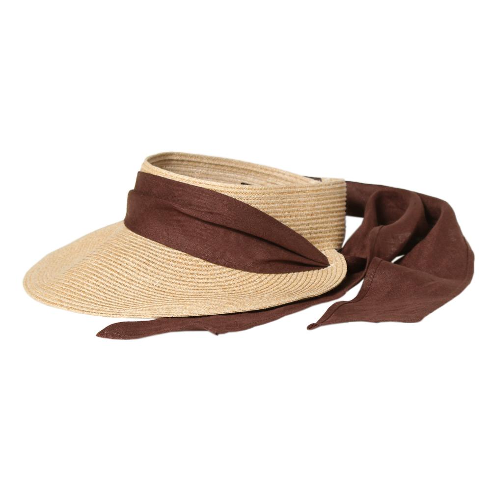 差しが強くなる季節に必ず持っておきたいお洒落サンバイザーです。持ち運びの時にはくるくると丸めて小さく出来ますので、とても便利です。リボンの垂れは取り外しが可能なので、気分に合わせてアレンジを楽しんで頂けます。
