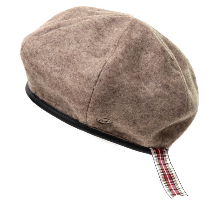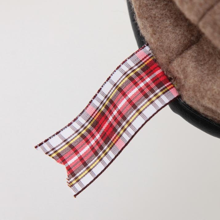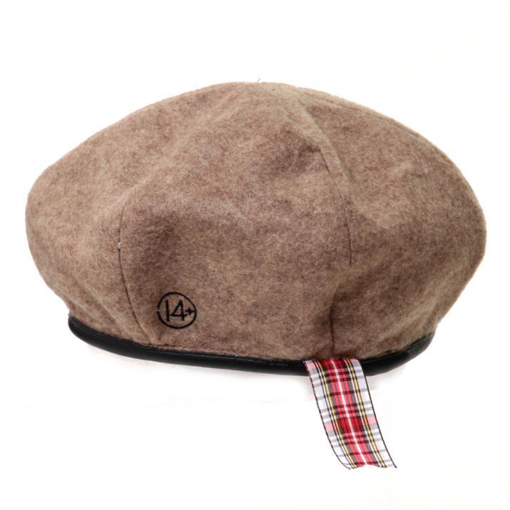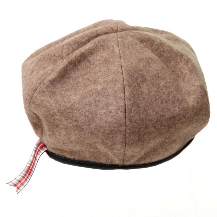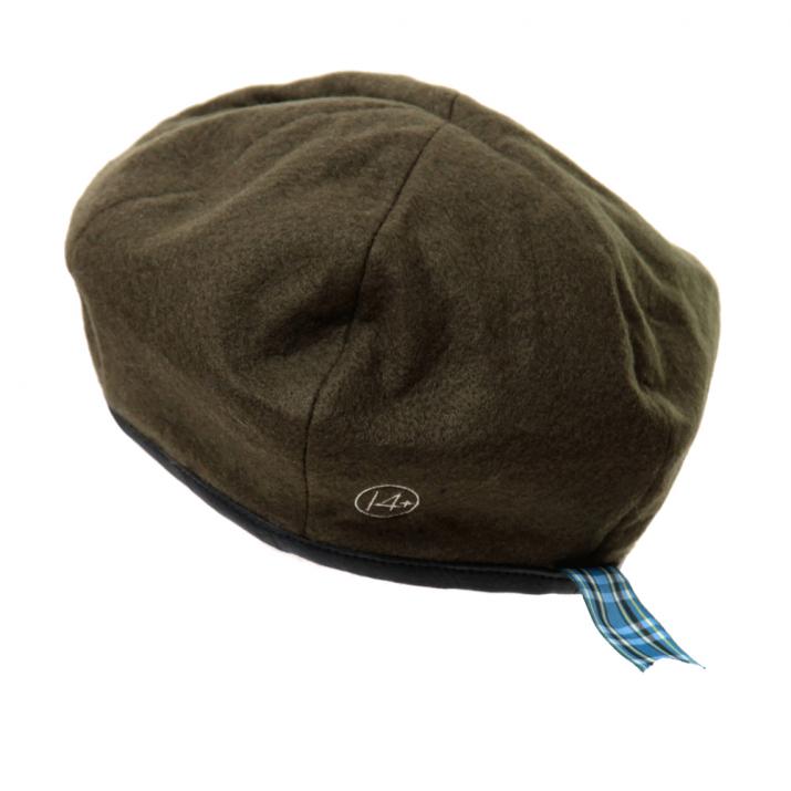フェルト縫い合わせのミリタリーベレーです。落ち着いたモッズカラーで、男の子も女の子にもカッコ良い帽子です。フェルトを縫い合わせた丸みのある形だから、そのままのせても綺麗なシルエットを保ちます。ひらりと舞うリボンが、カッコ良さのなかにもキュートな雰囲気。裏地は全色とも同じ黒とベージュのチェック生地です。