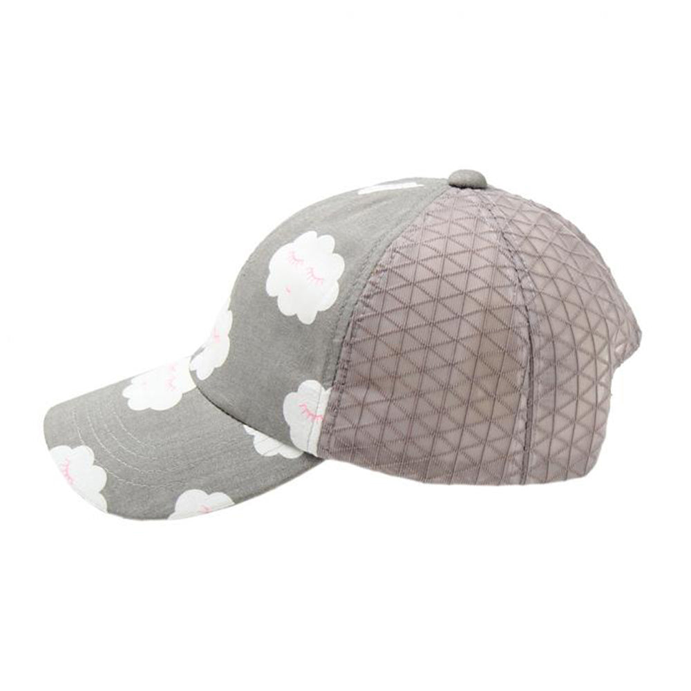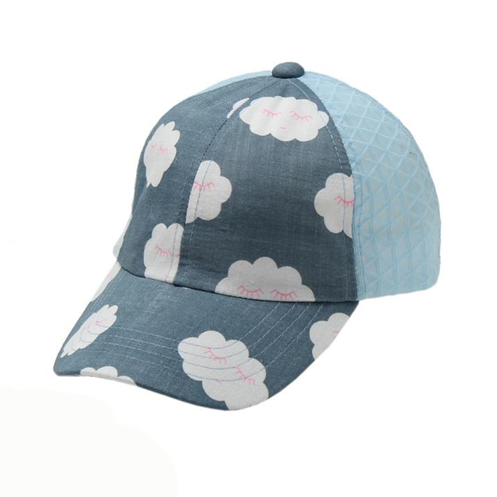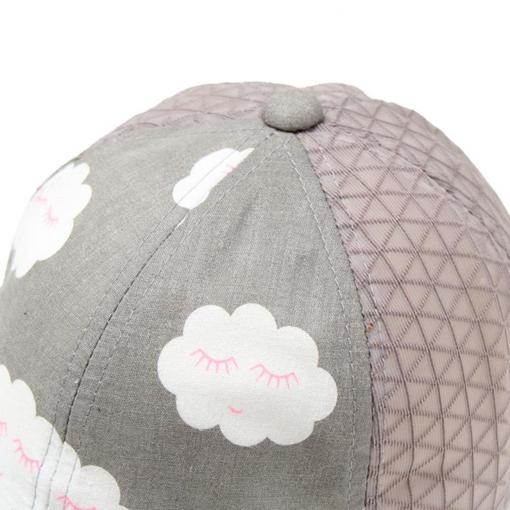 雲のプリントが優しく可愛いキッズ用キャップです。フロント以外は通気性に優れたメッシュ素材で蒸れにくく、優しい被り心地。手洗いも可能なので、汚れても安心の嬉しい素材です。