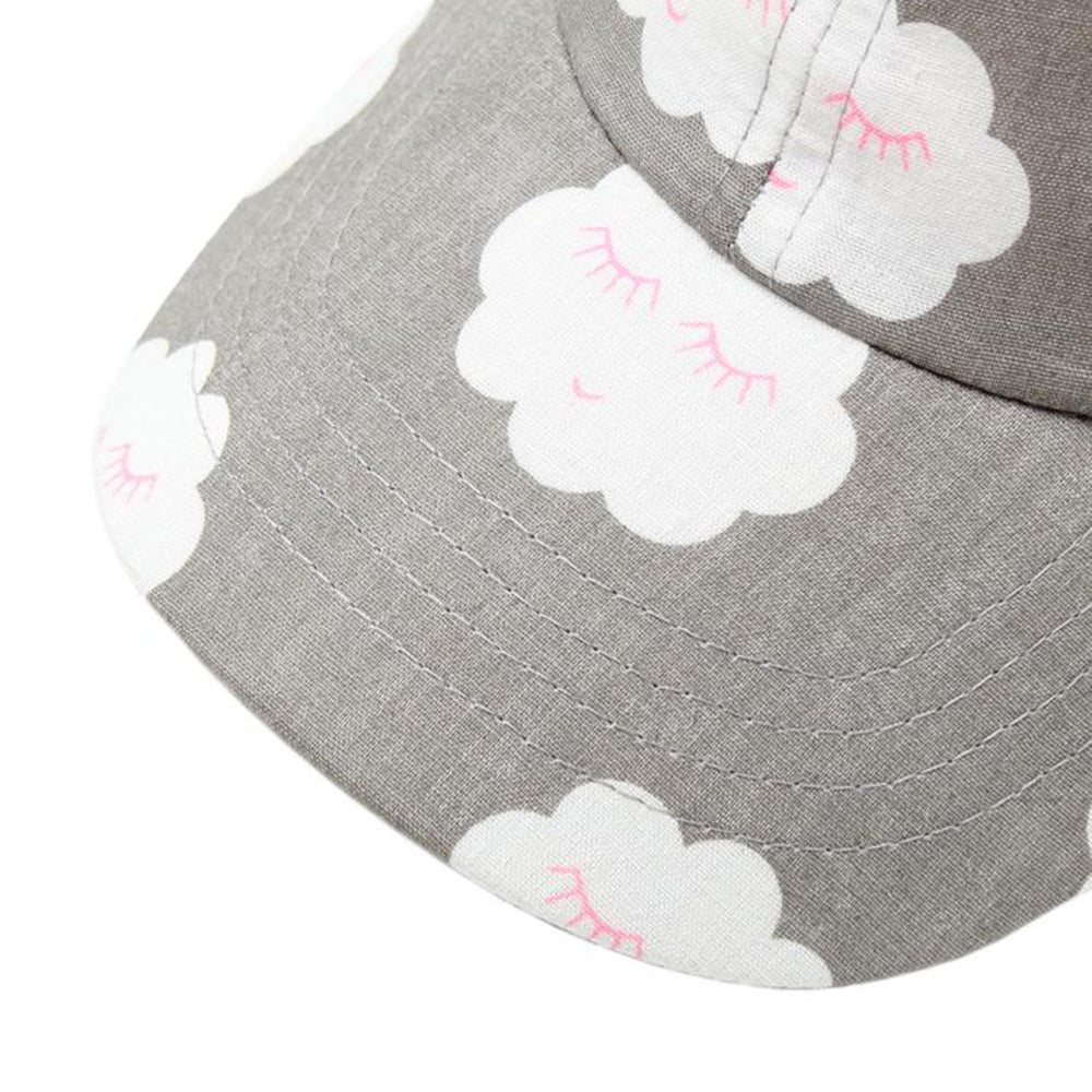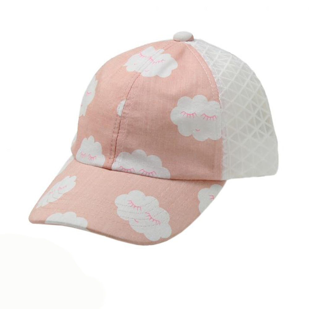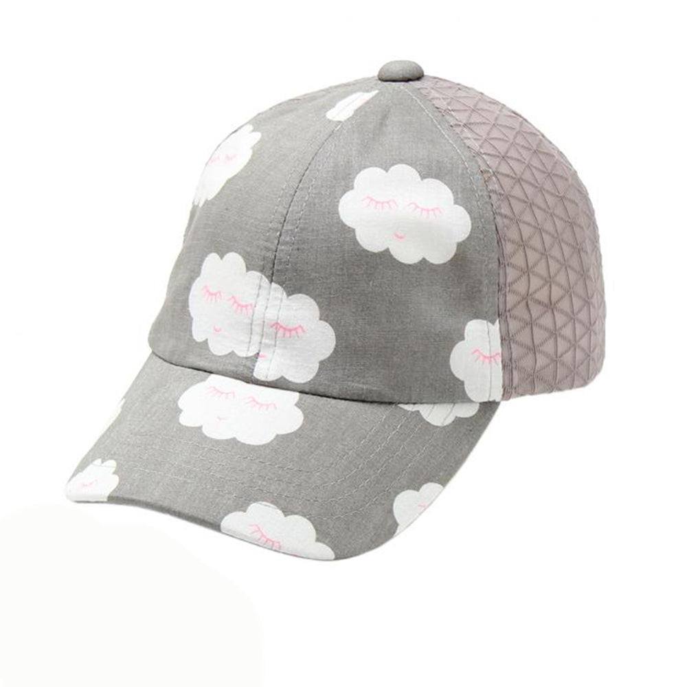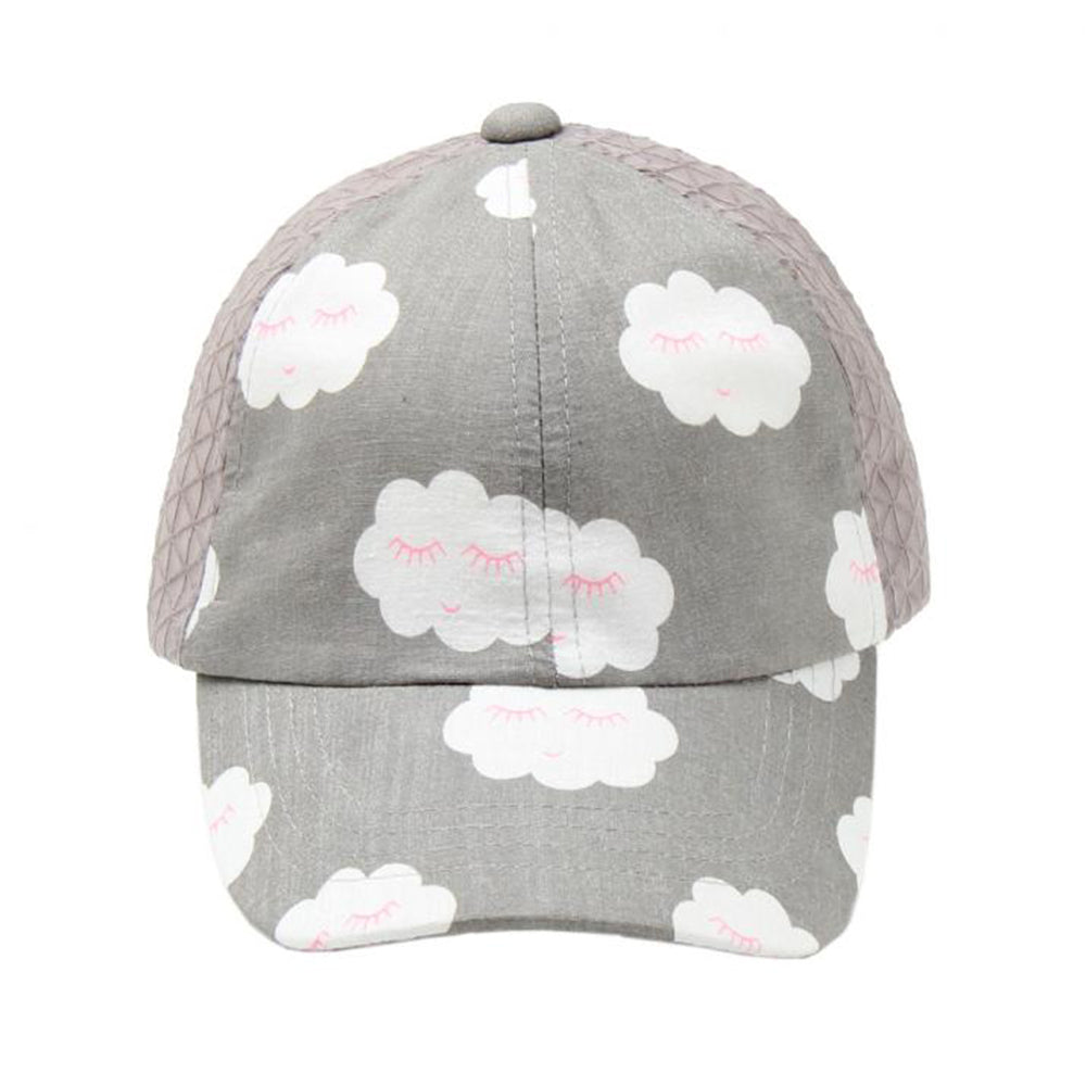 雲のプリントが優しく可愛いキッズ用キャップです。フロント以外は通気性に優れたメッシュ素材で蒸れにくく、優しい被り心地。手洗いも可能なので、汚れても安心の嬉しい素材です。