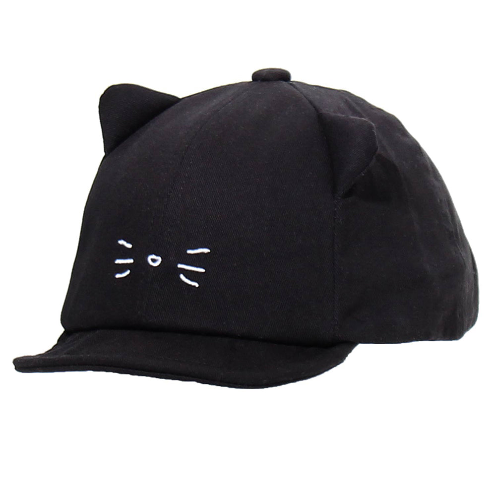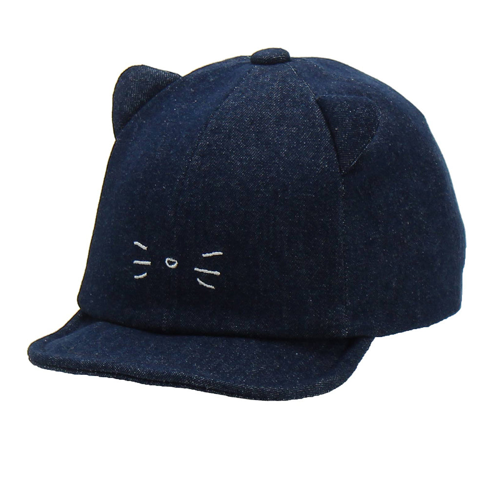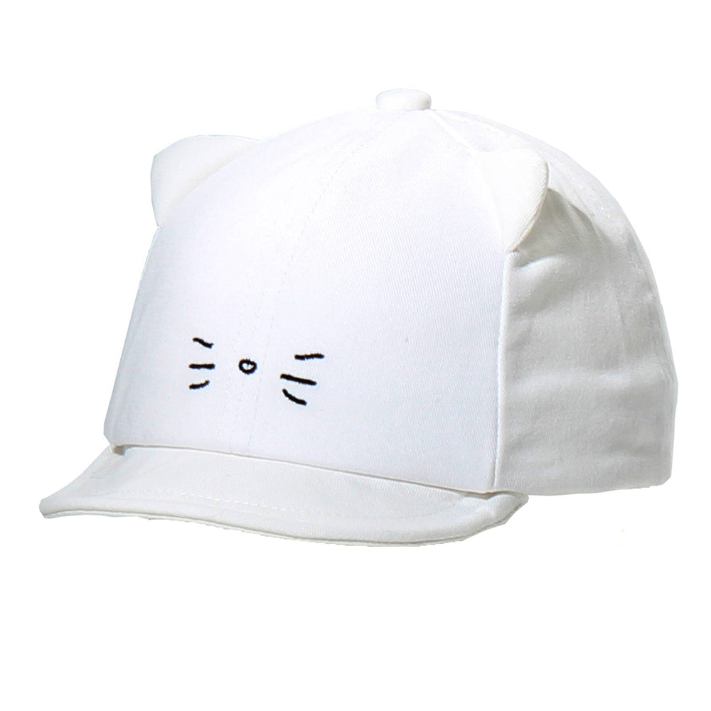 猫耳デザインがキュートなキッズ用キャップです。小ぶりの猫耳と小さなおひげがとっても可愛い!あご紐も付いていますので、走ったりしても脱げにくい。とてもキュートで愛らしいデザインです!