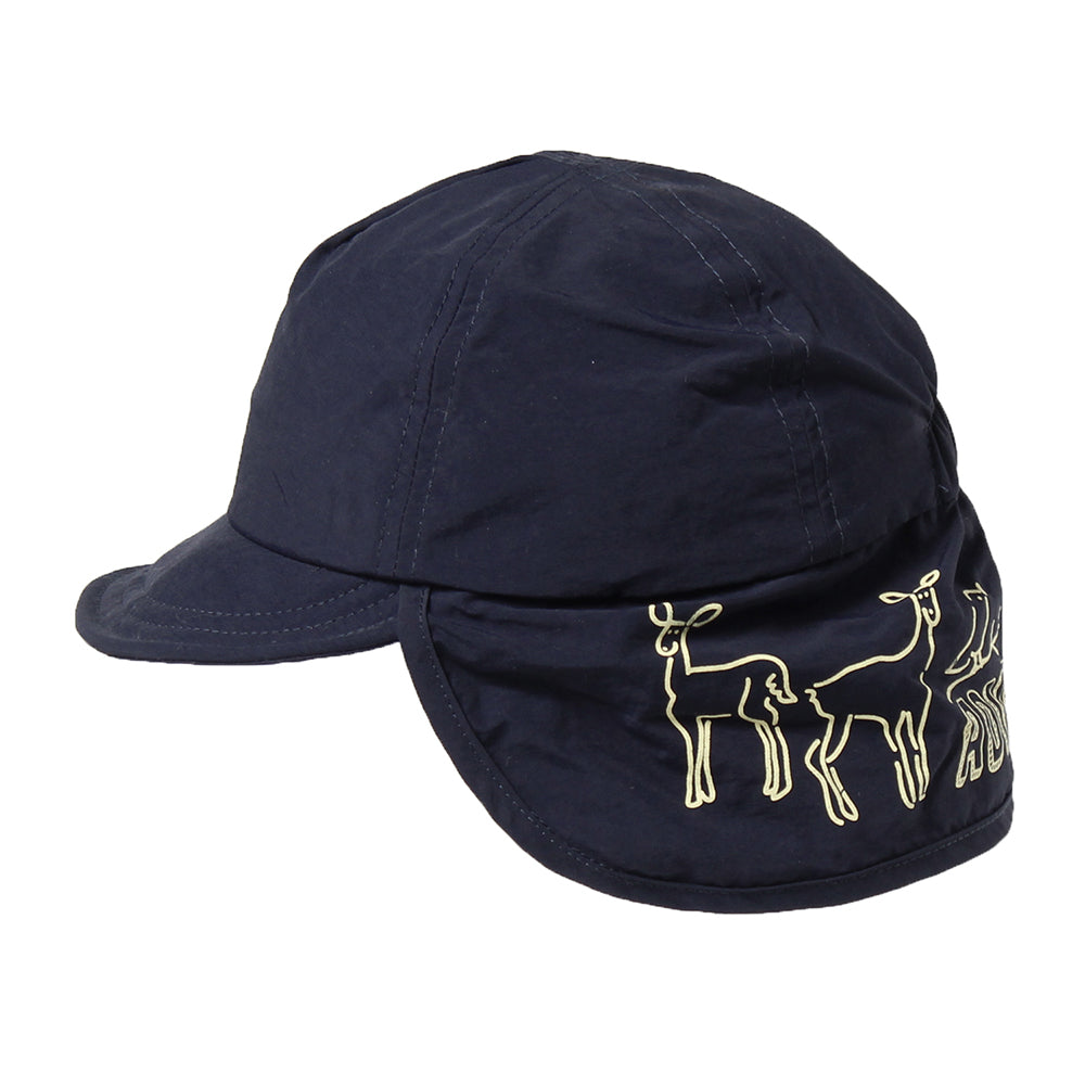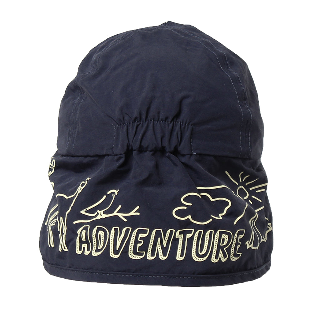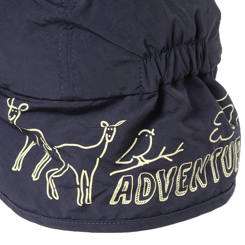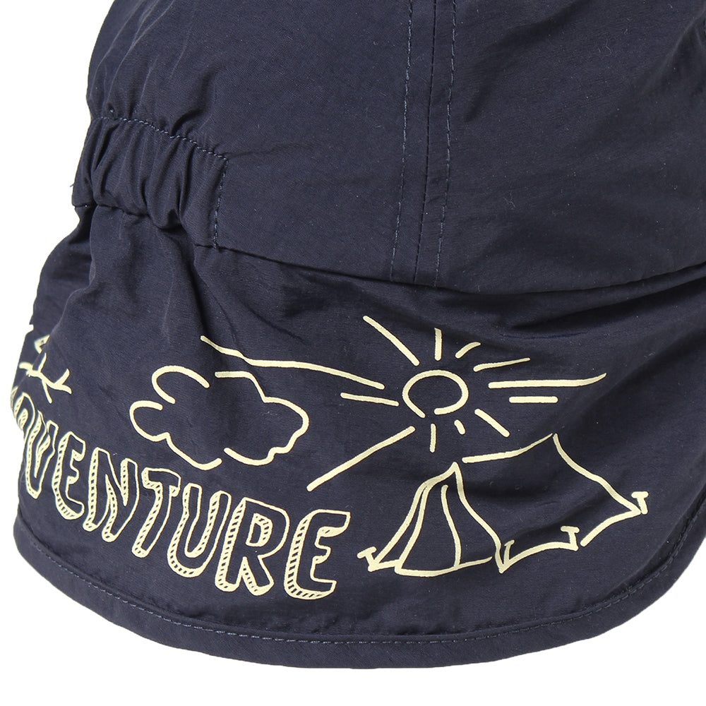 日よけ対策に可愛いタレを付けたキッズ用キャップです。後ろ部分に着けたタレ(日除けマント)には「adventure」のロゴとおしゃれなアニマルイラスト付き!春夏の強い日差しからお子さんの肌を守ってくれます。素材はポリエステル100%で、小さく折りたたんでの持ち運びもOK。これからの季節に一つは持っておきたいキッズ用のカジュアルキャップです。サイズ展開があるので、ぴったりの大きさを選ぶことが出来ます。◆サイズ展開52㎝、54㎝。