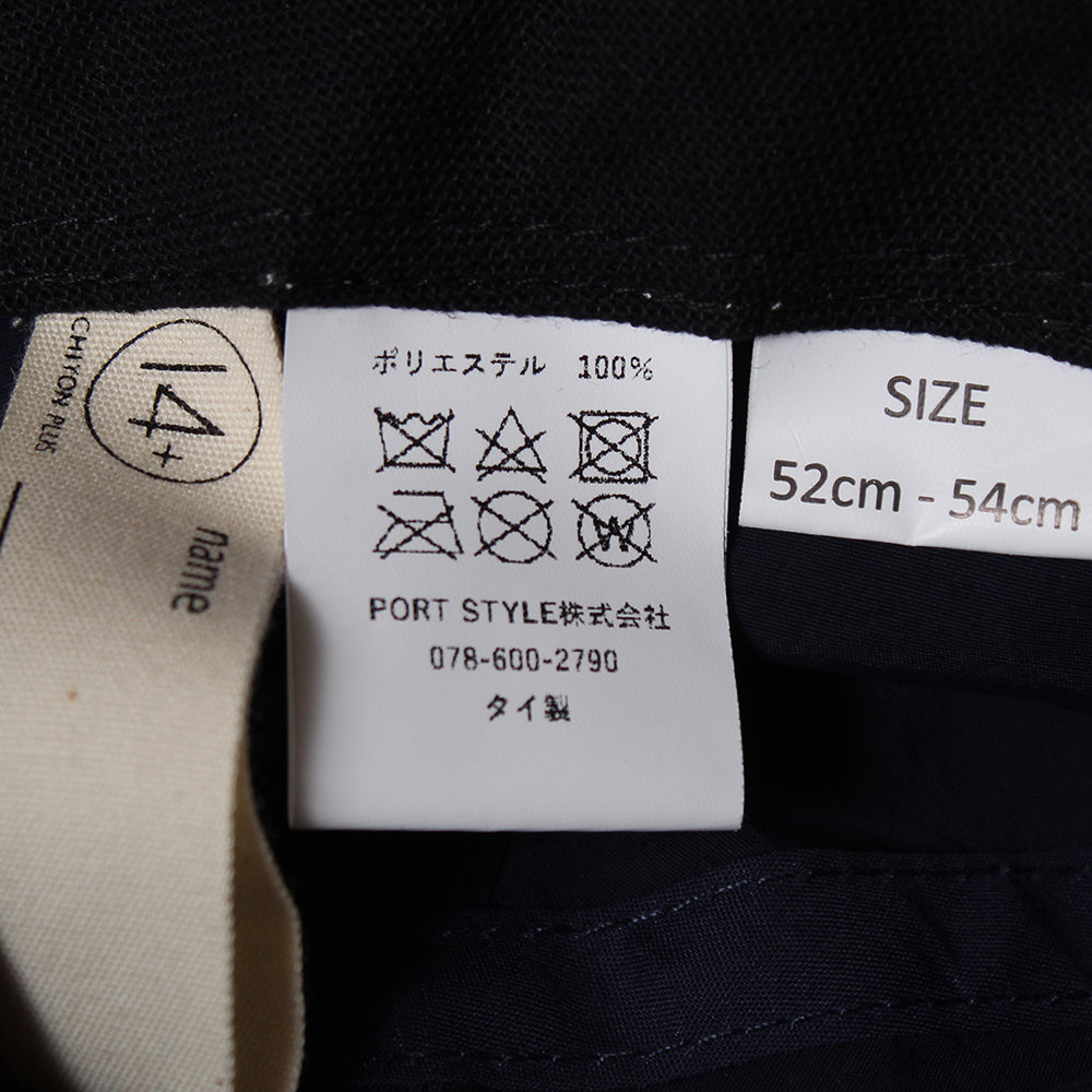 | サイズ | 頭囲 | 深さ | つば(前方) | その他サイズ |