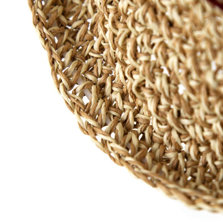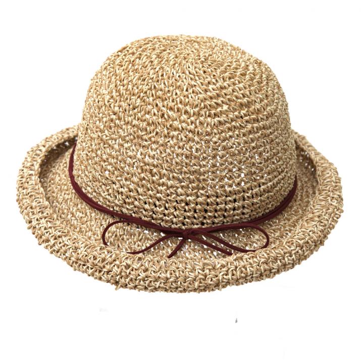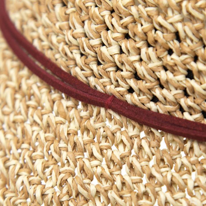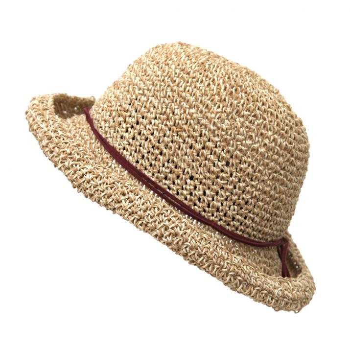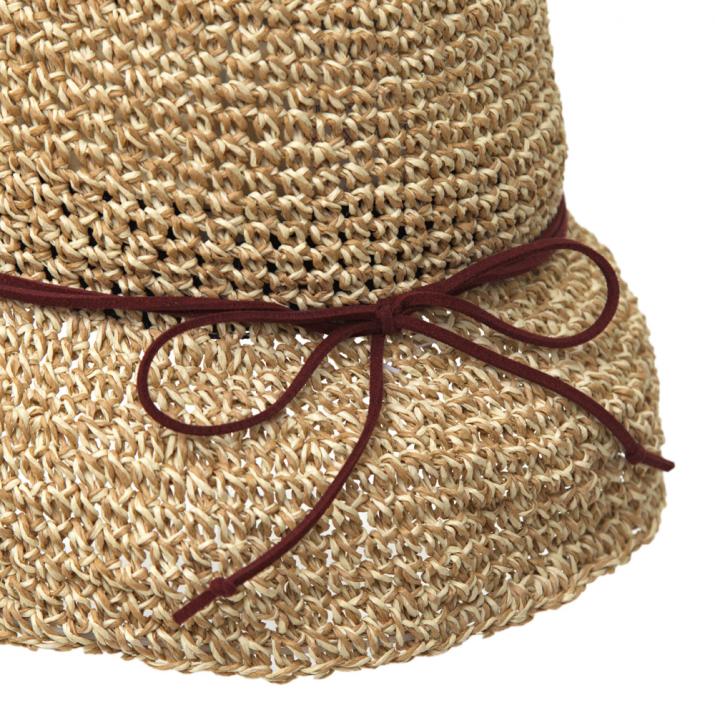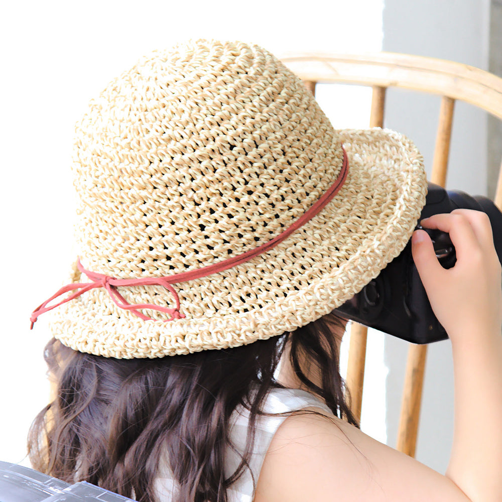 ざっくりなコマ編みだから、編み目の大きさ、つばの長さなどが商品によって異なります。この自然な風合いも、手作りだからこそ。柔らかく扱い易い素材で、夏のご旅行にもおすすめです。