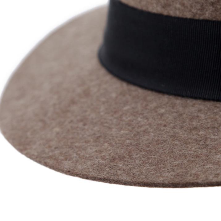 切りっぱなしのブリムが、大人っぽい印象。秋冬コーデの定番アイテム、ツバ広フェルトハットのKIDSサイズです。杢っぽい柔らかなカラーの本体に、、艶めくグログランのリボンが上品な印象。優しく柔らかい本体に裏地は付けず、軽い仕上がりです。被り心地が良く、お子様にもストレスなく被って頂けます。