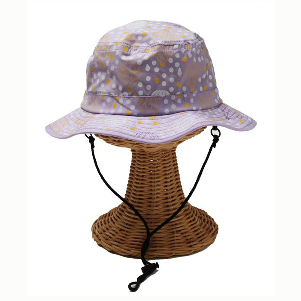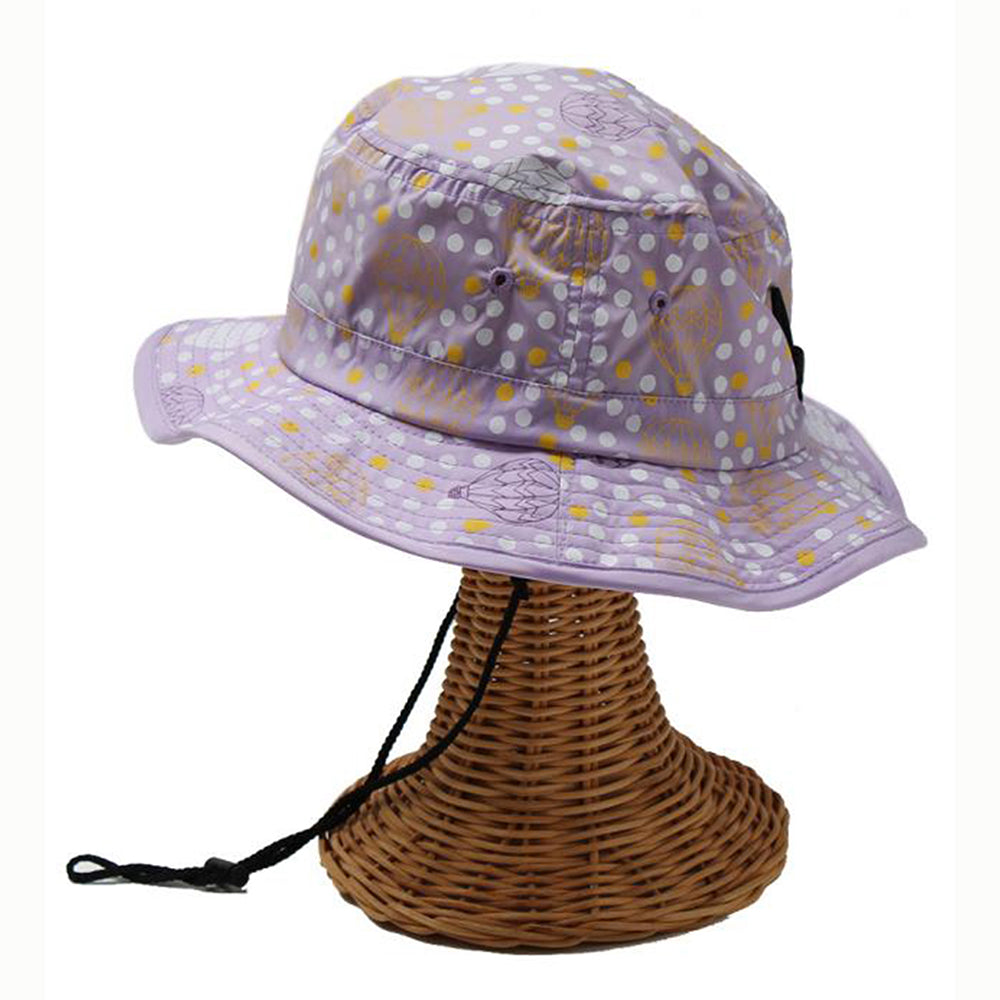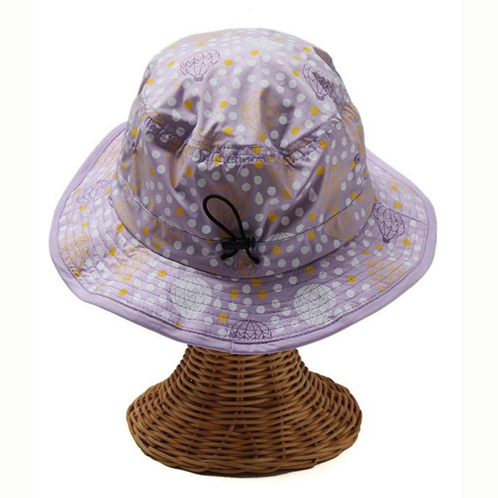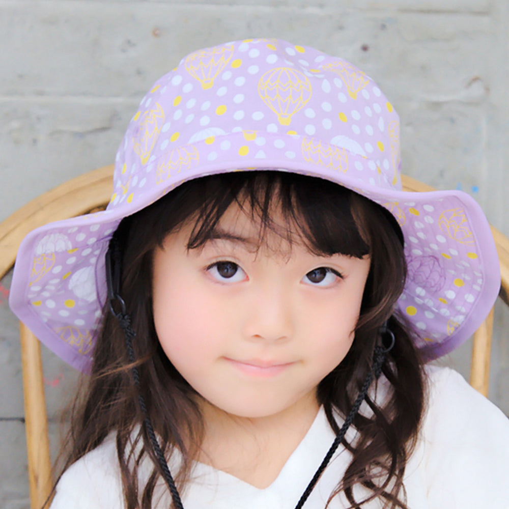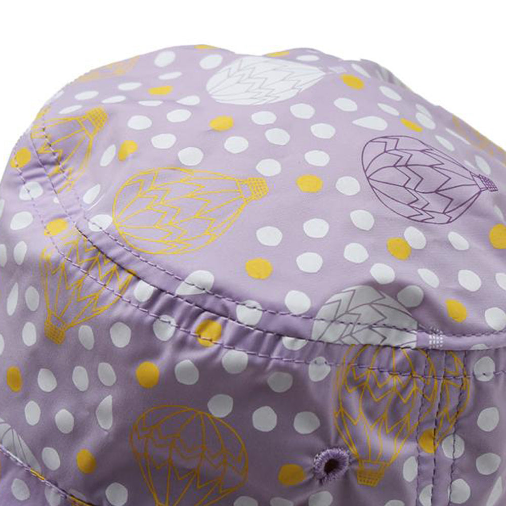 気球と水玉のプリントがとってもキュートなキッズ用サファリハットです。撥水加工を施しておりますので、汚れにくく手洗いもOK!日除け防止のマントが内蔵されていますので、日除け効果もバッチリです。柔らかい素材感でコンパクトに折りたたんでの持ち運びにも便利!