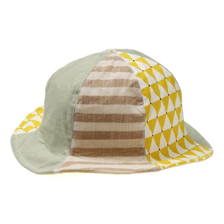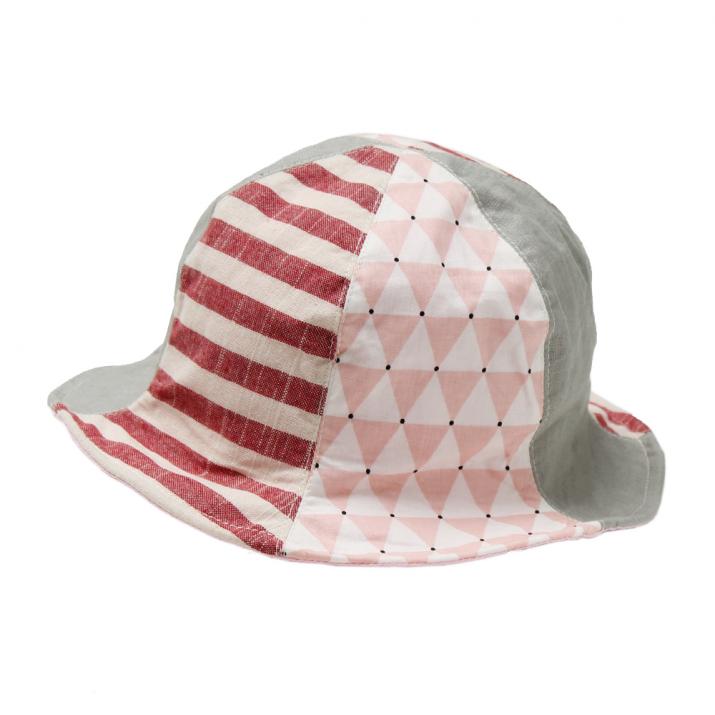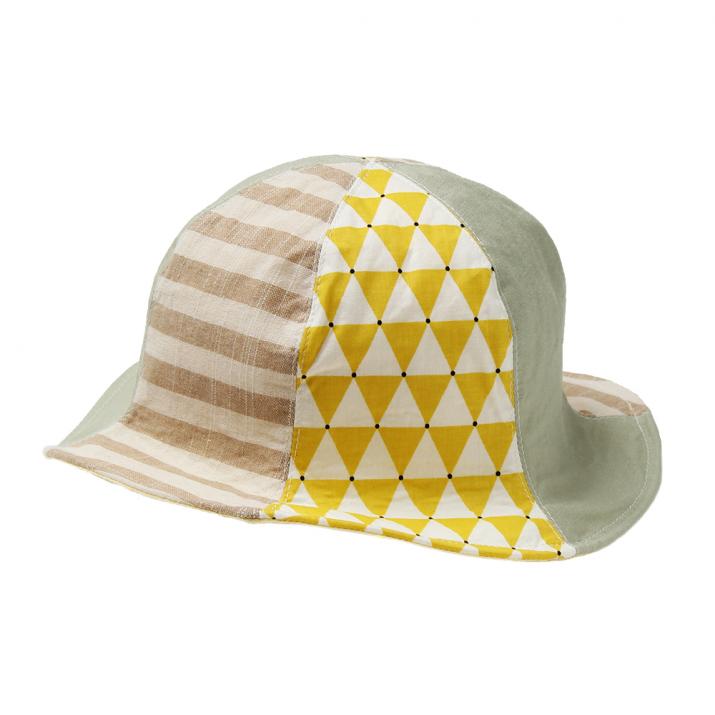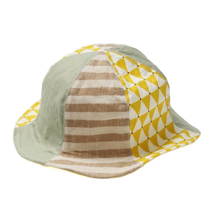 リバーシブルで2通りのデザインが楽しめるキッズのチューリップハット。シンプルな無地デザインと、パッチワークデザインの2パターンで全く雰囲気の違うコーディネートが楽しめます。つば端にはワイヤーが入っていますので、お好みで形を整えられます。