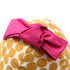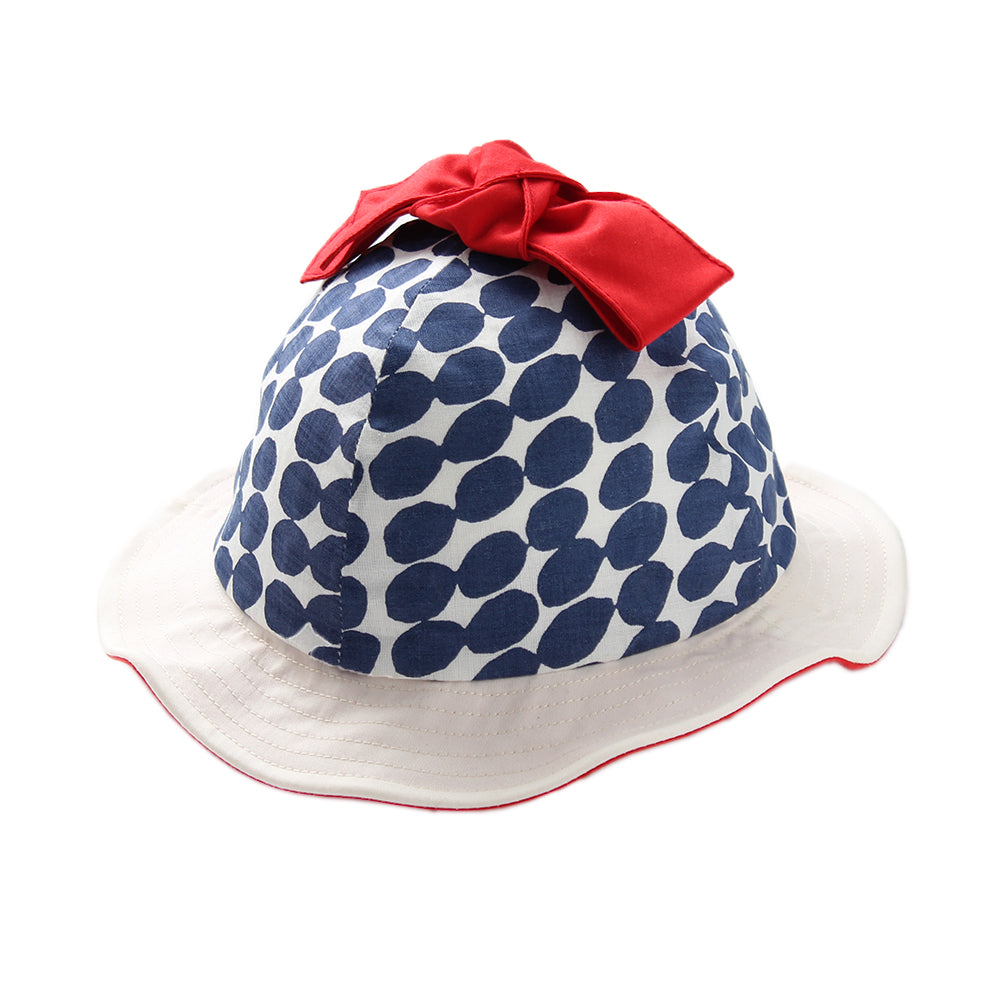 トップのリボン愛らしいキッズ用ハットです。あご紐が付いていますので、走っても脱げにくく安心です。コットン100%の柔らか素材でとても優しい被り心地。夏のお出かけに最適な可愛いハットです。