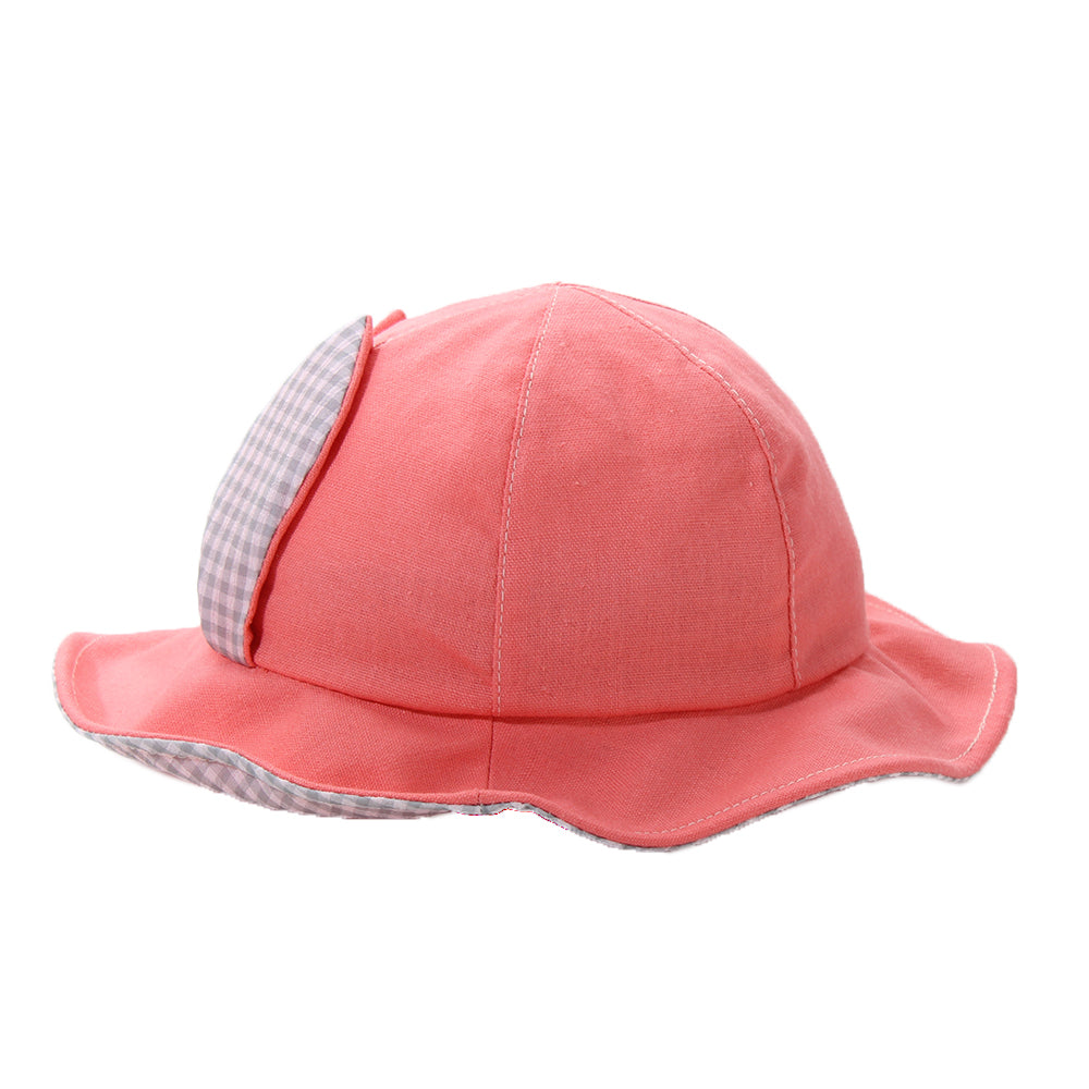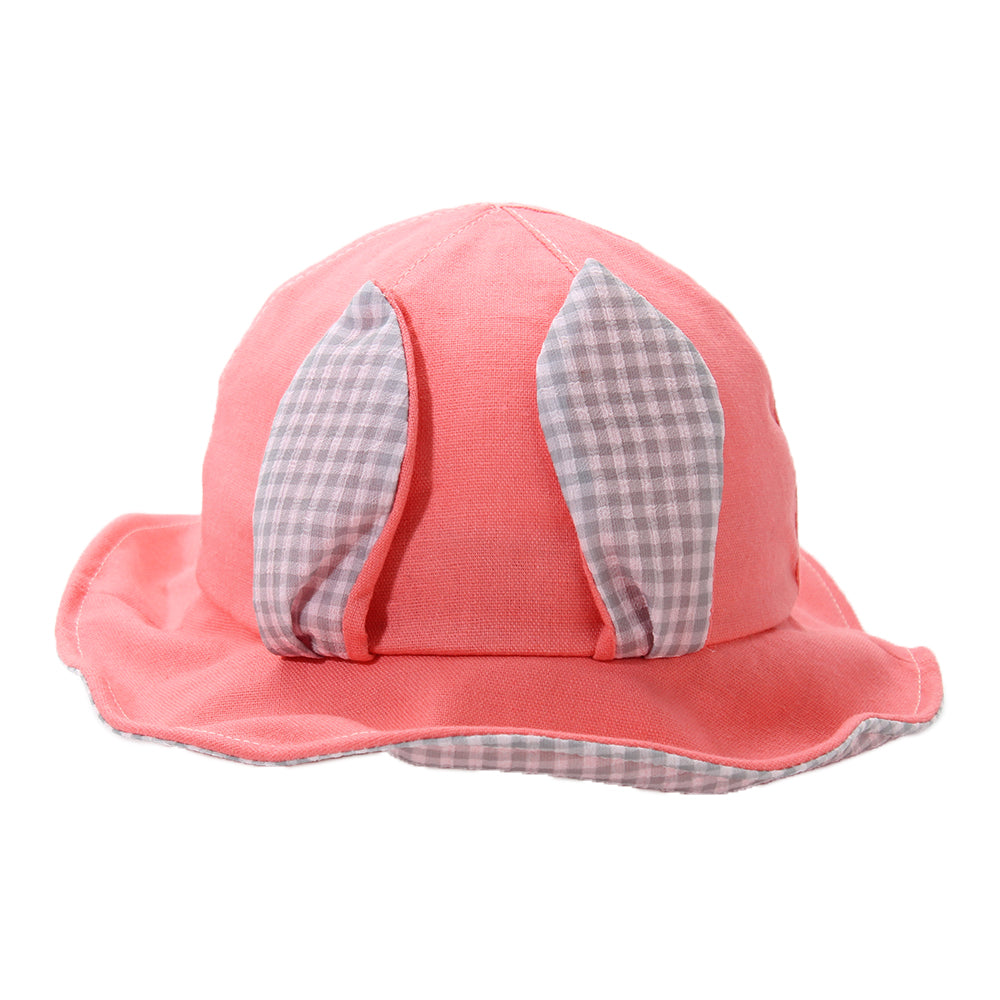 フロントのウサ耳が愛らしいキッズ用ハットです。あご紐付きなので、走ったりしても脱げにくく安心です。
