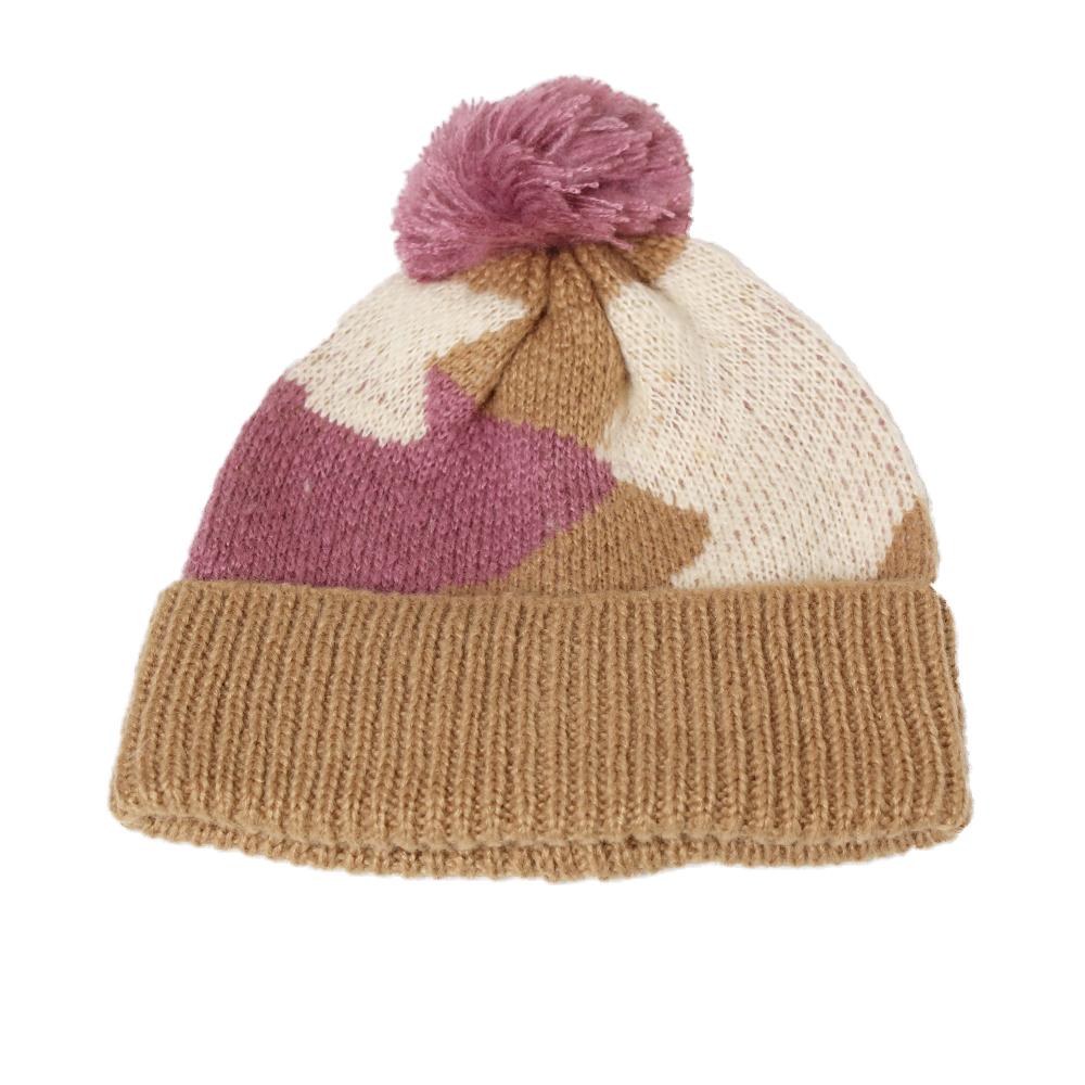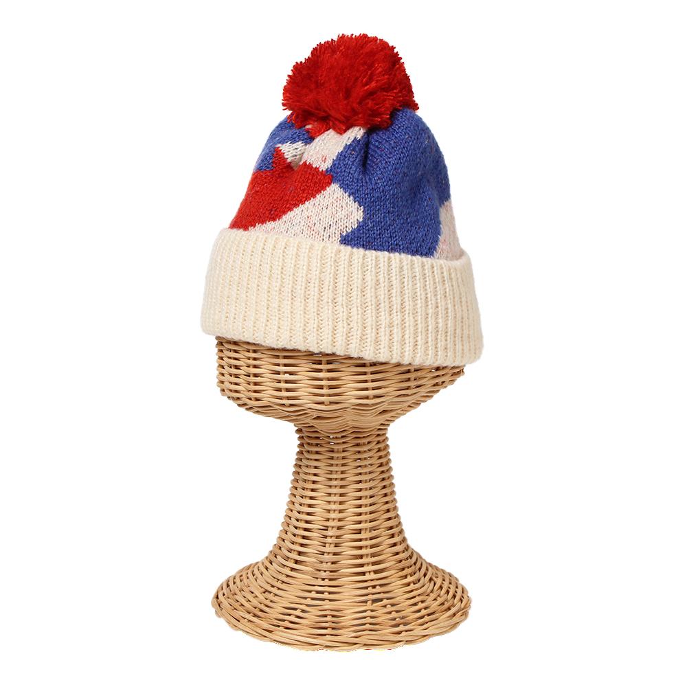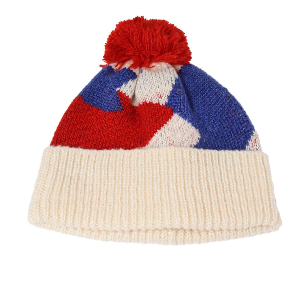 アクリルモヘアを使用した温かいキッズ用ニット帽です。グラフィック柄が、普段の装いを明るく華やかに見せてくれます。消臭、抗菌効果のあるパーツを部分的に使用していますので、汗などの不快な匂いを中和し抑制することで快適に被っていただけます。