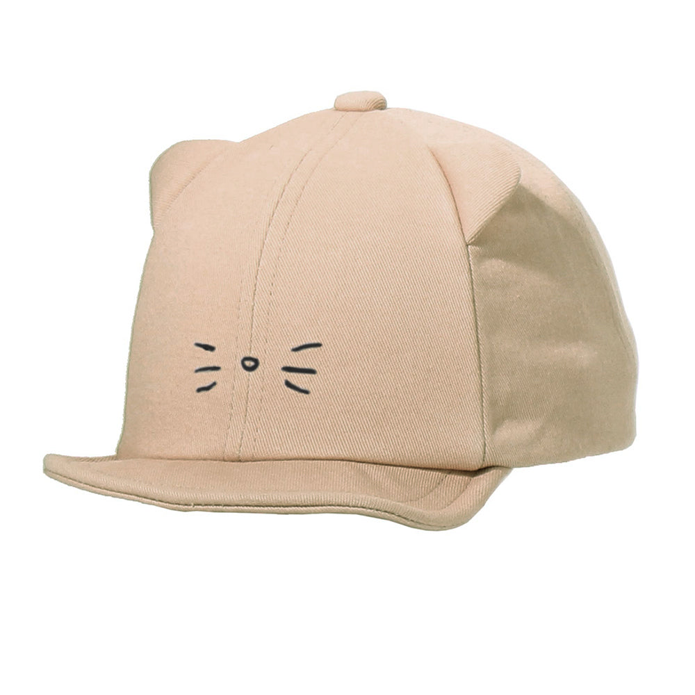 猫耳が付いたとってもキュートなキッズ用キャップ。コットン100%の柔らか素材で、つばに芯は入れず小さく折りたためるので持ち運びにも便利です。つば先にはワイヤーが入っていますので、お好みの形に整えて頂けます。