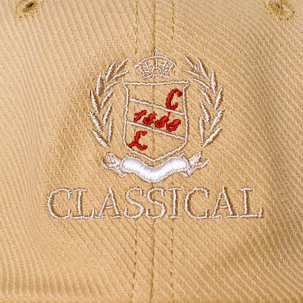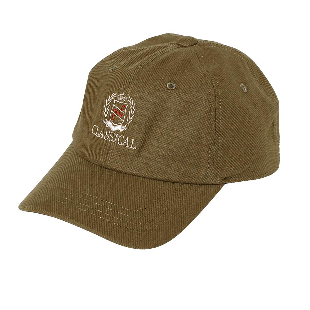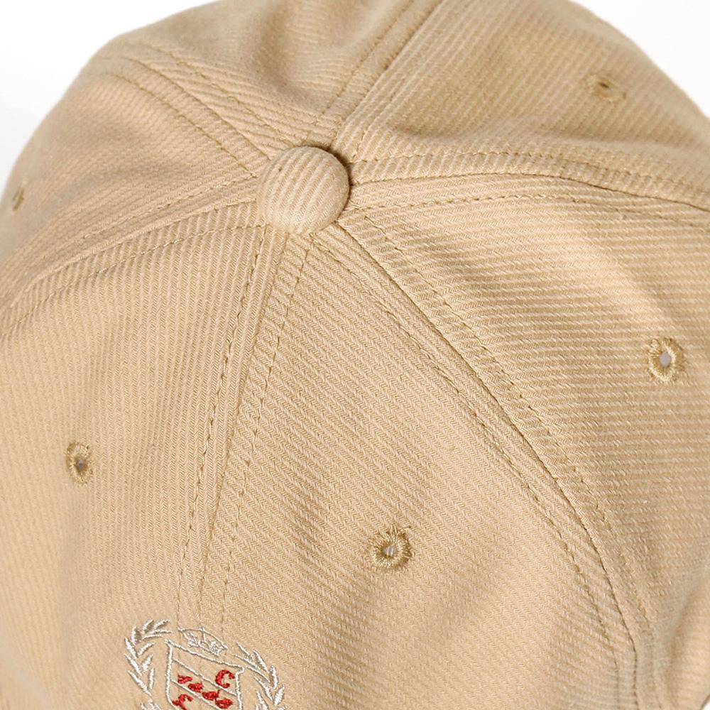 落ち着いた色味のコットンキャップにクラシカルな刺繍が施されたキャップ。定番シルエットなので被りやすく、薄手の爽やかなコットン100%の生地は春から夏にかけてロングシーズン活躍してくれます。バックベルト仕様でサイズ調節が可能です。
