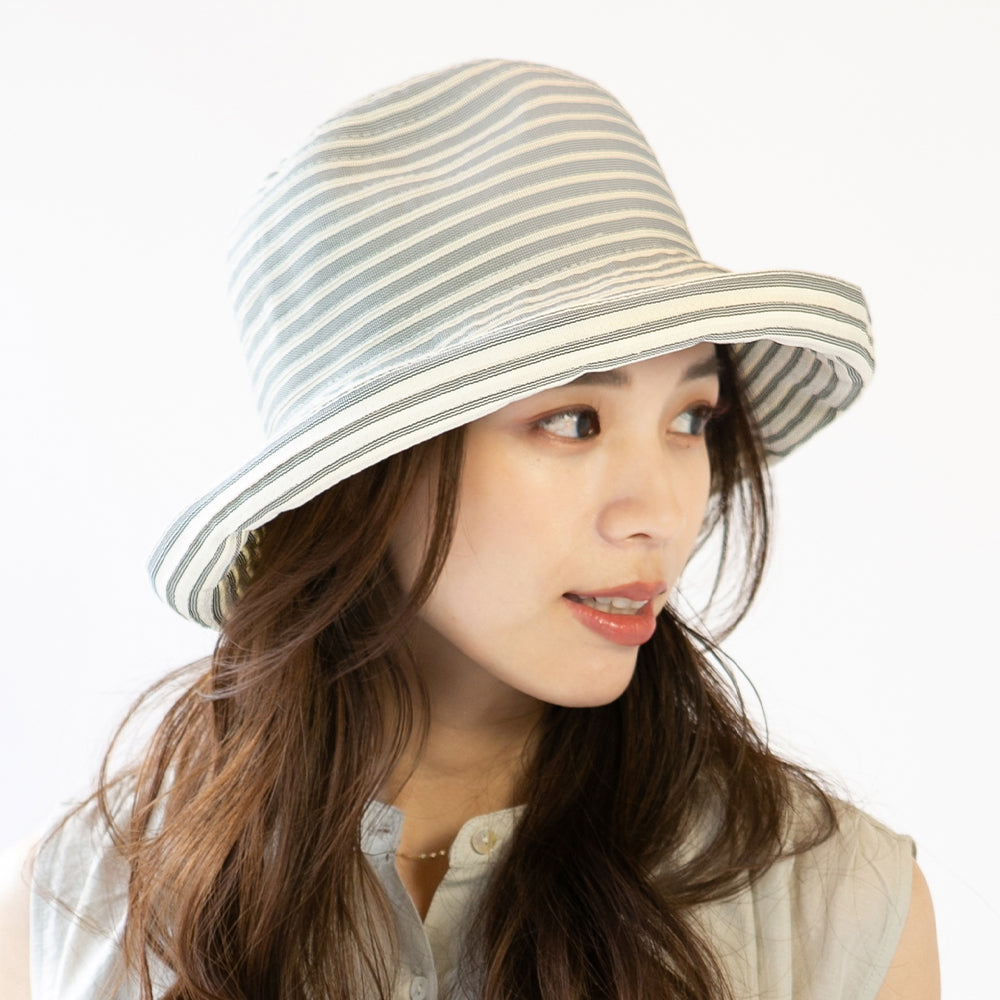 春夏らしいボーダー柄が上品なセーラーハット。繊細なブレード編みで通気性に優れ、とても爽やかな被り心地です。折り畳める柔らかな素材なので、持ち歩きにも便利なアイテムです。さり気なくついた小ぶりなチャームもポイント。つば広デザインなので紫外線対策もバッチリ◎裏側にサイズ調節可能なテープ付きなので、ご自身のサイズ感に合わせて頂けます。洗濯機洗いが可能なので、いつでも清潔に保つことができます。