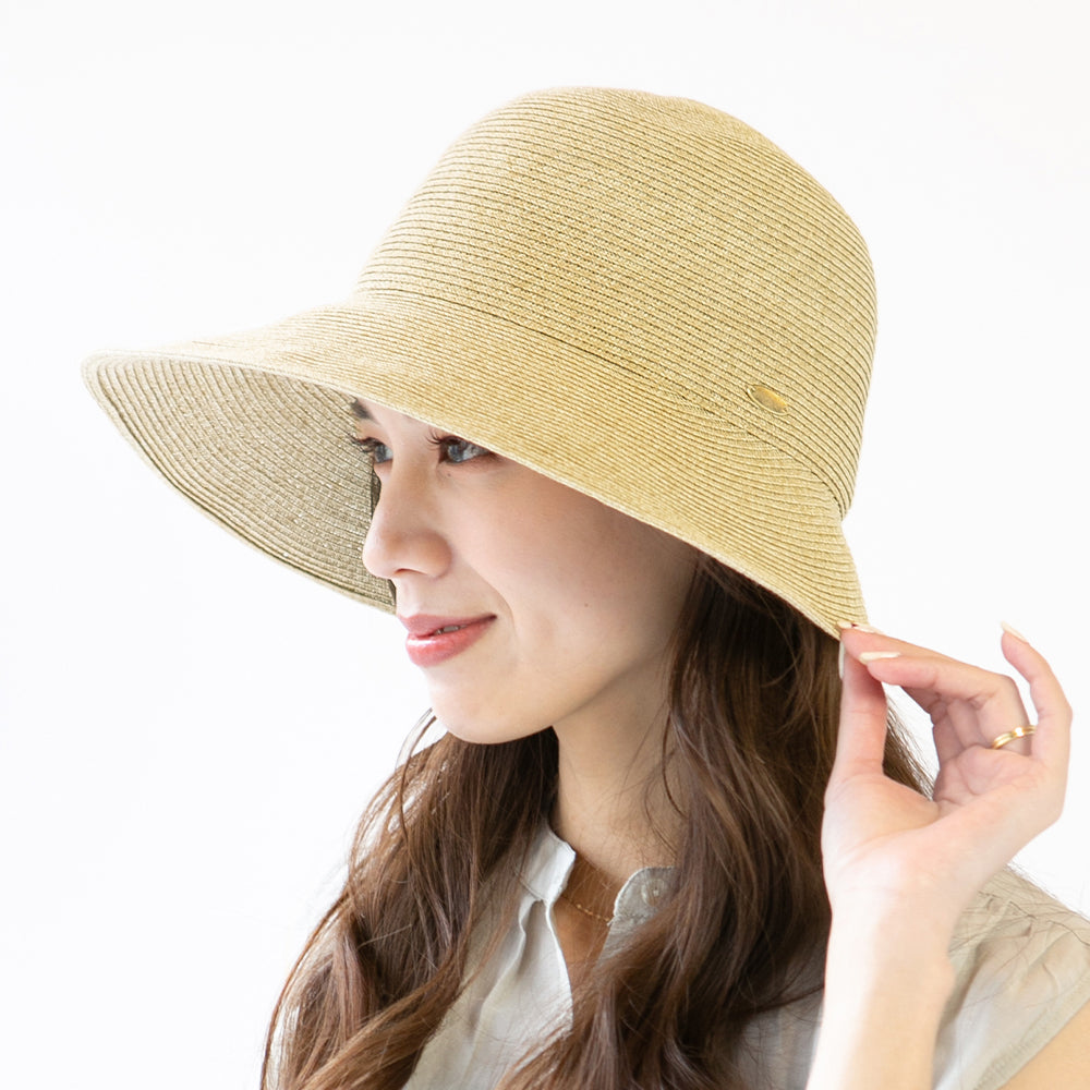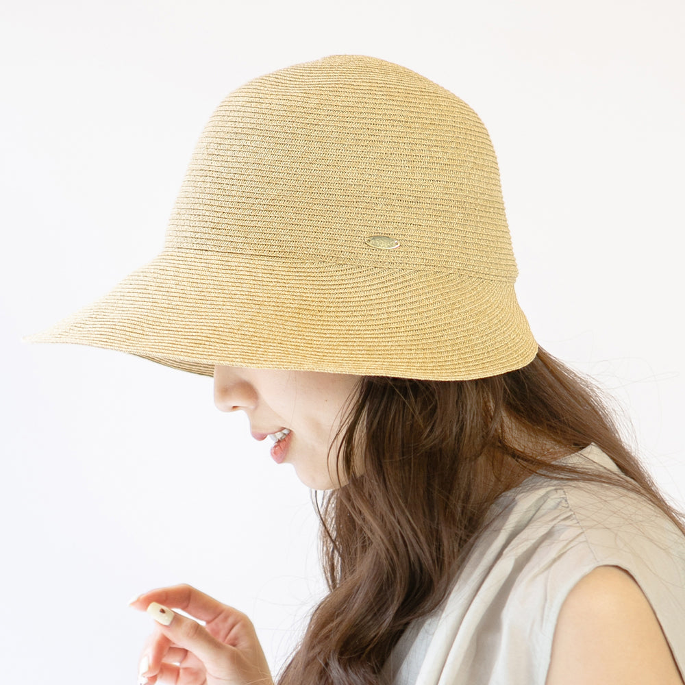 ナチュラルな雰囲気が夏にぴったりのジョッキーハット。つばが広めなので日除けにもバッチリな機能性にも優れたアイテムです◎サイドのゴールドタグがアクセントの上品なデザイン。内側にあるすべりの裏側には、サイズを調節して頂けるテープが付いていますのでご自分のサイズ感で被って頂けます。