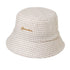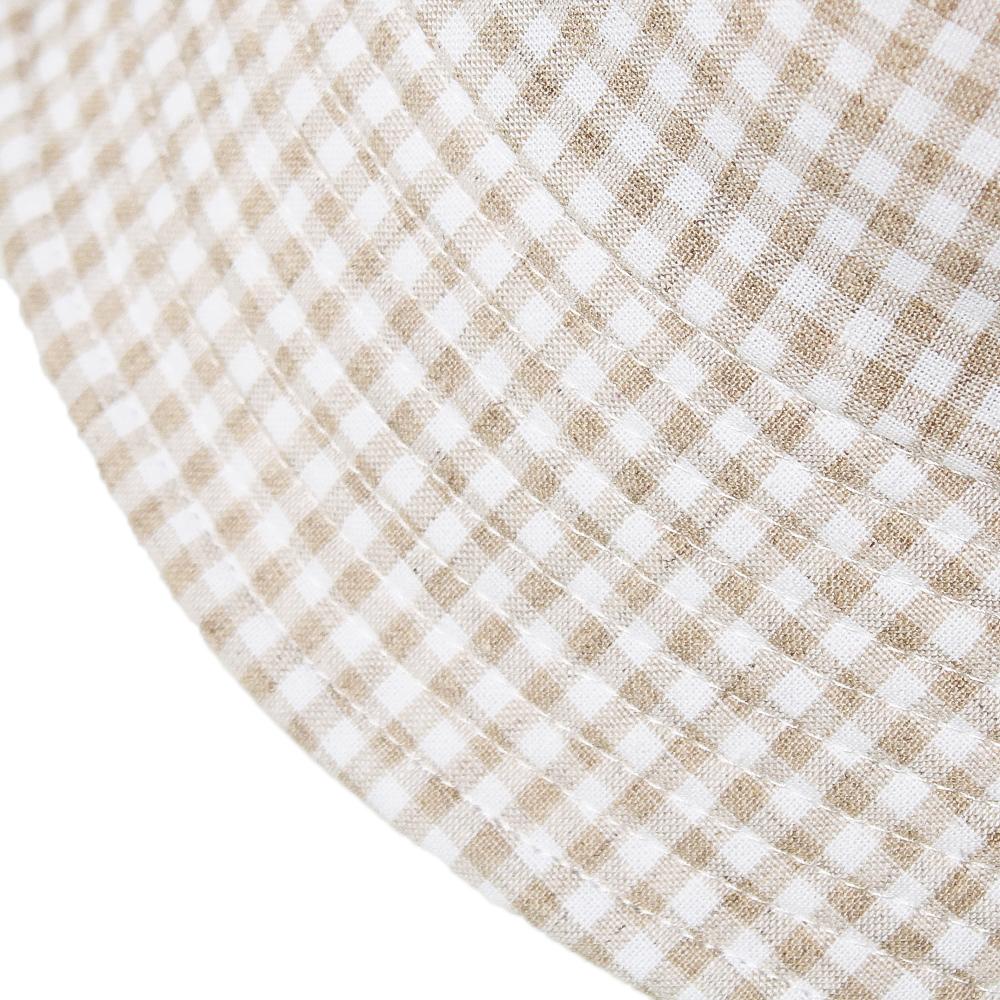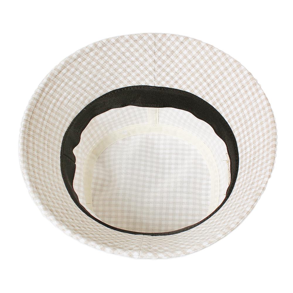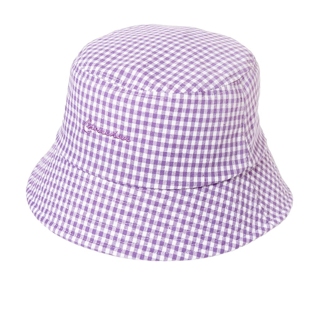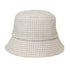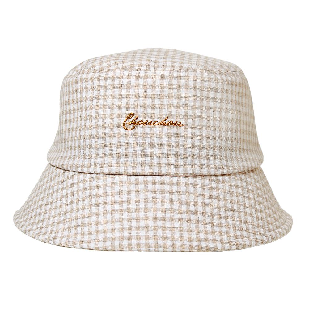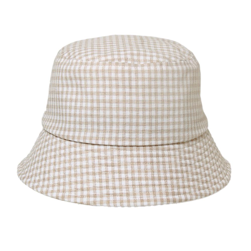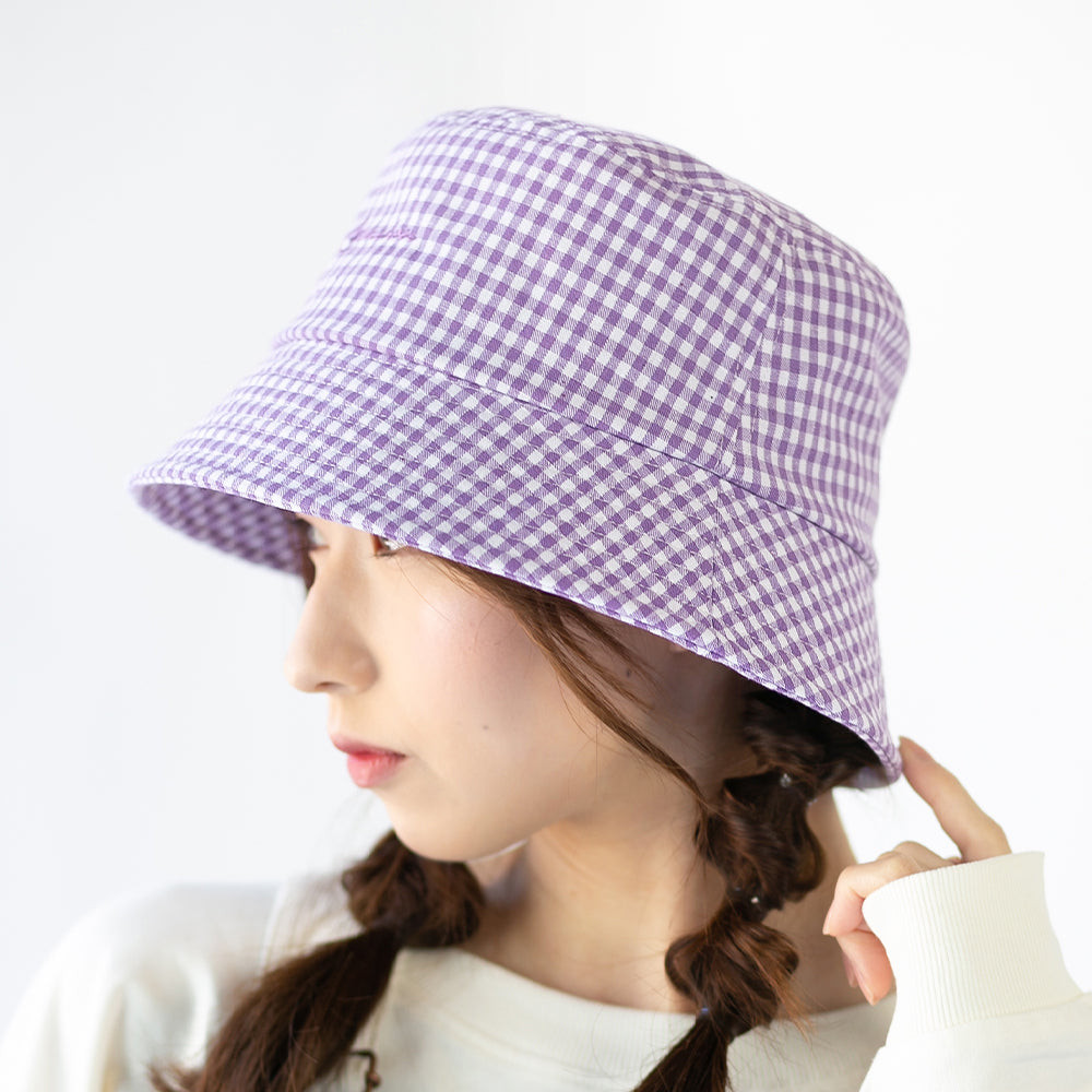 春夏らしいギンガムチェックデザインが可愛いバケットハット。筆記体のロゴ刺繍もさり気ないポイントに◎普段のスタイルのアクセントになるアイテムです。内側にあるすべりの裏側には、サイズを調節して頂けるテープが付いていますのでご自分のサイズ感で被って頂けます。