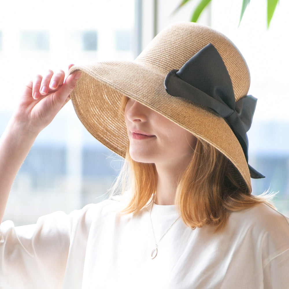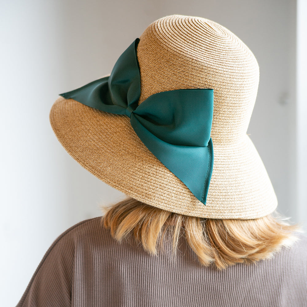 丸みを帯びたシルエットが大人可愛いペーパーブレードカラーリボンハット。見た目にも涼しげなペーパーブレードカラーリボンハットハットは春夏のお出かけ等にとてもおすすめ!艶感のある大きめリボンでエレガントさもプラス。裏側にサイズ調節可能なテープ付きなので、ご自身のサイズ感に合わせて頂けます。