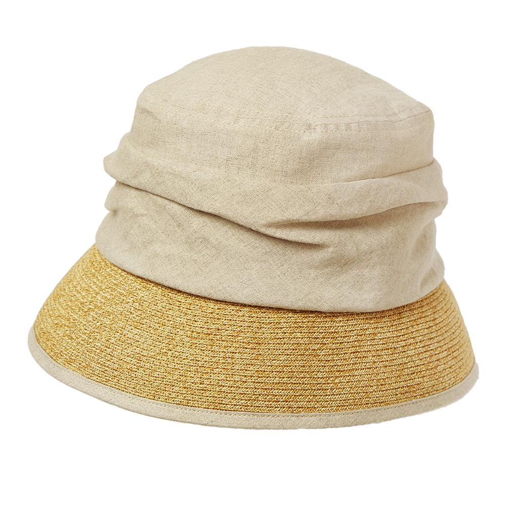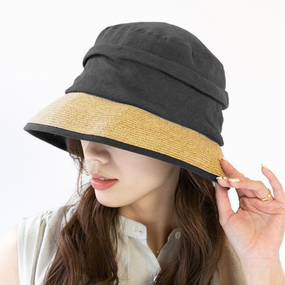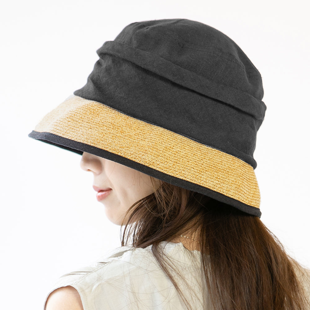 涼し気な麻素材とペーパーブレードの掛け合わせがお洒落なクロッシェハット。裏地は付けず芯のみを張り付けることで通気性に優れ、被り心地も爽やかです。ダウンブリムデザインなので小顔効果も◎内側にあるすべりの裏側には、サイズを調節して頂けるテープが付いていますのでご自分のサイズ感で被って頂けます。