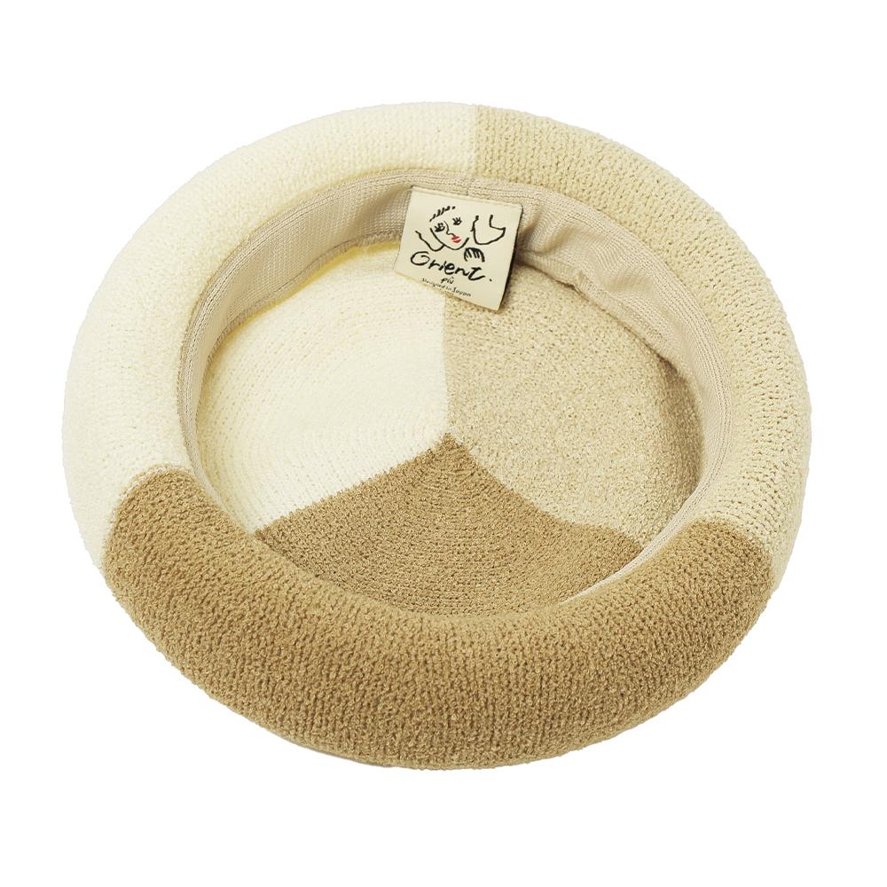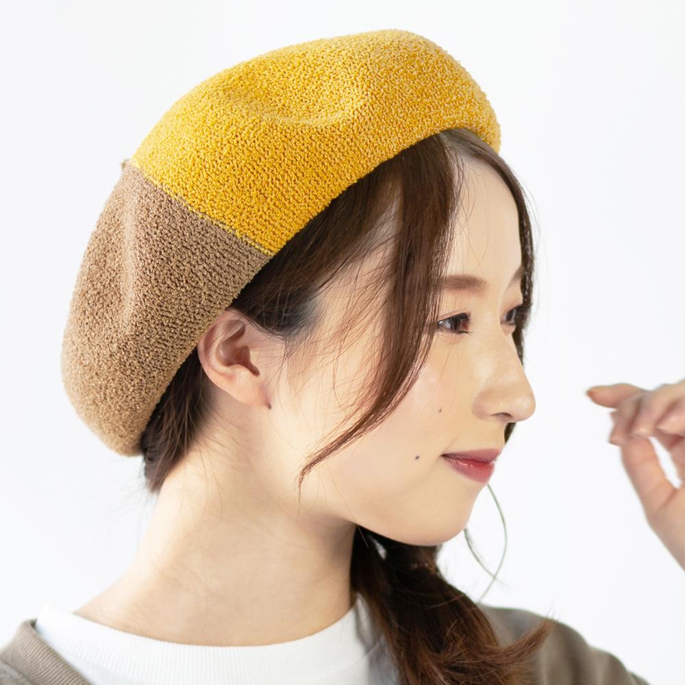 サーモ素材の爽やかなベレー帽。通気性に優れ、とても軽やかな被り心地◎3色のカラーブロックが個性的でおしゃれなデザインです。