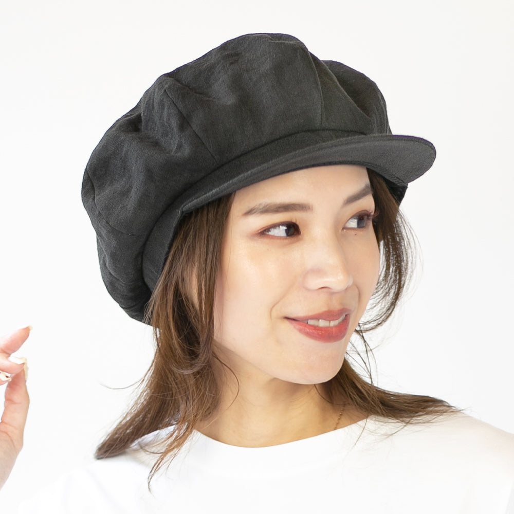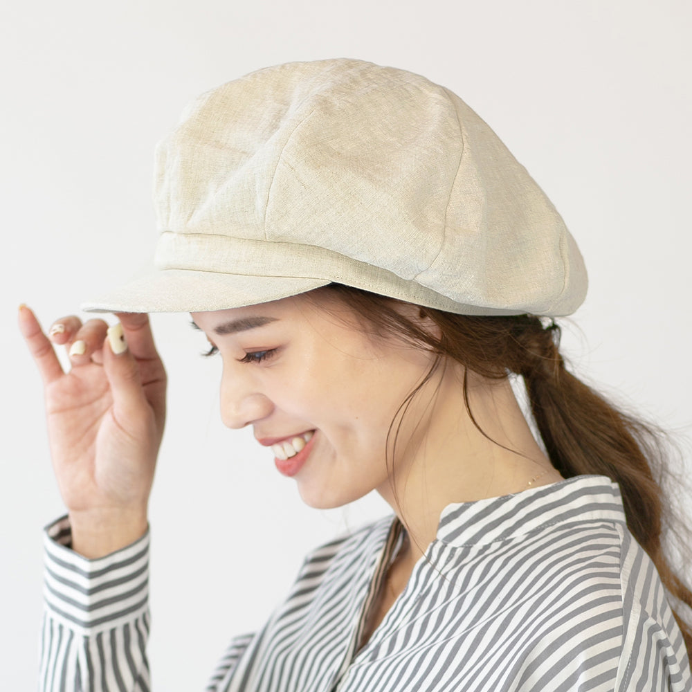 涼し気なリネン素材使用したビッグシルエットキャスケットです。ボリュームのある円形のシルエットで被りやすく、小顔効果も期待できます◎被った時にくしゅっとなるデザインがナチュラルで可愛い雰囲気です。裏側はメッシュ素材なので、蒸れにくい仕様に。裏側にサイズ調節可能なテープ付きなので、ご自身のサイズ感に合わせて頂けます。