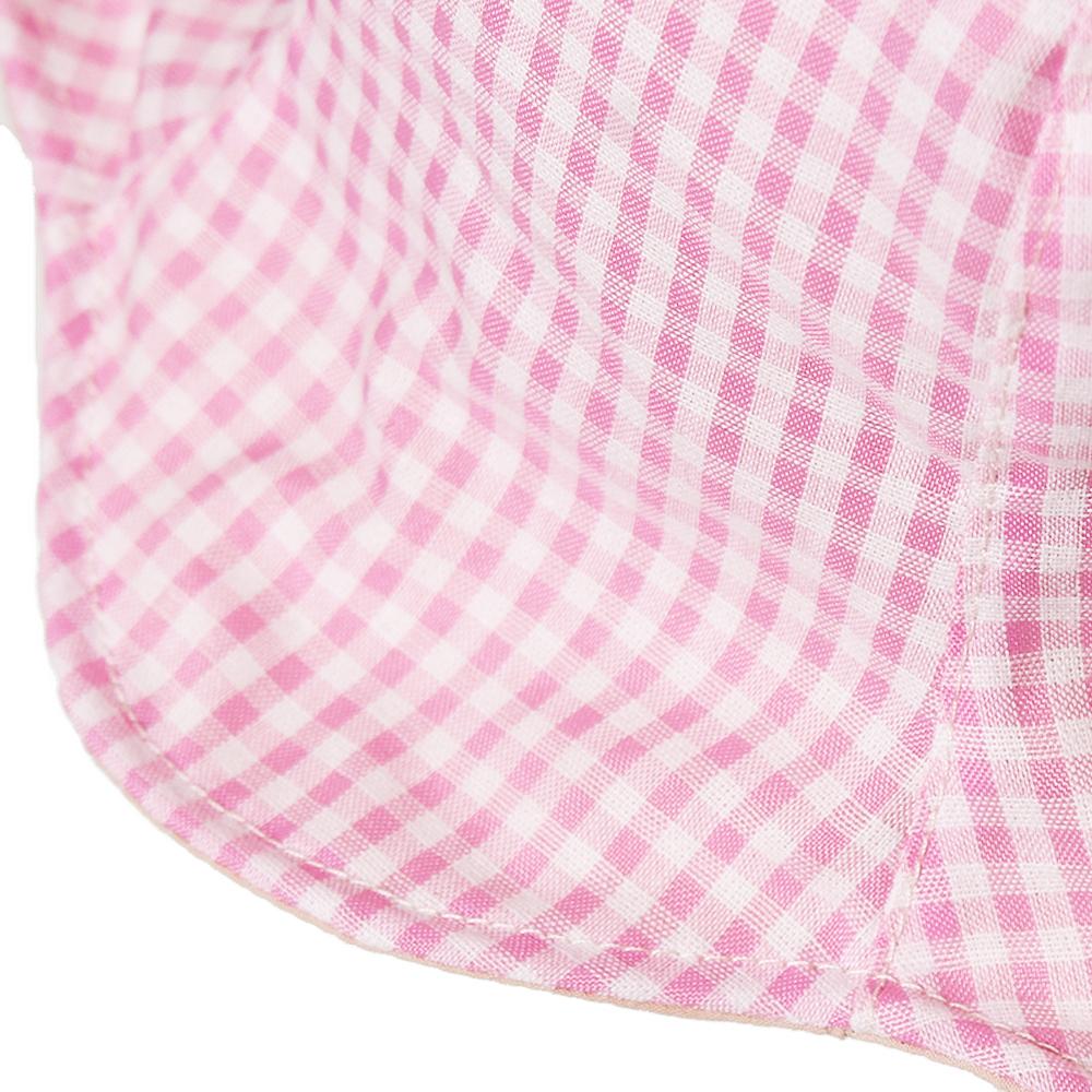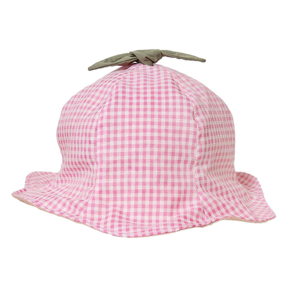 結びリボンとギンガムチェックデザインが可愛いキッズチューリップハット。つば先にワイヤーが入っている為、上げたり下げたり自由なシルエットに変えることができます。裏側も同系色の無地デザインなので、さり気なく中が見えてお洒落◎春夏スタイルのアクセントになるアイテムです。