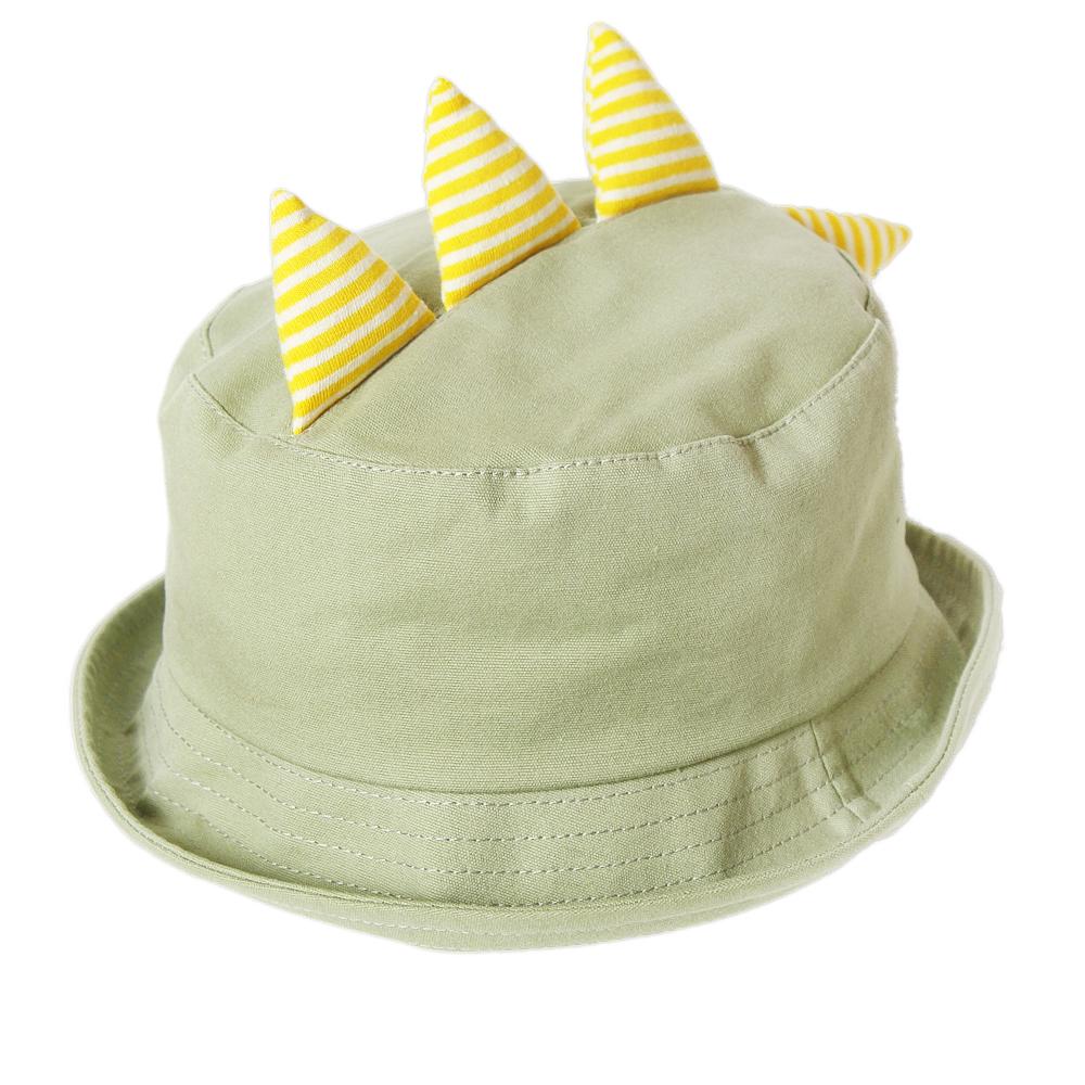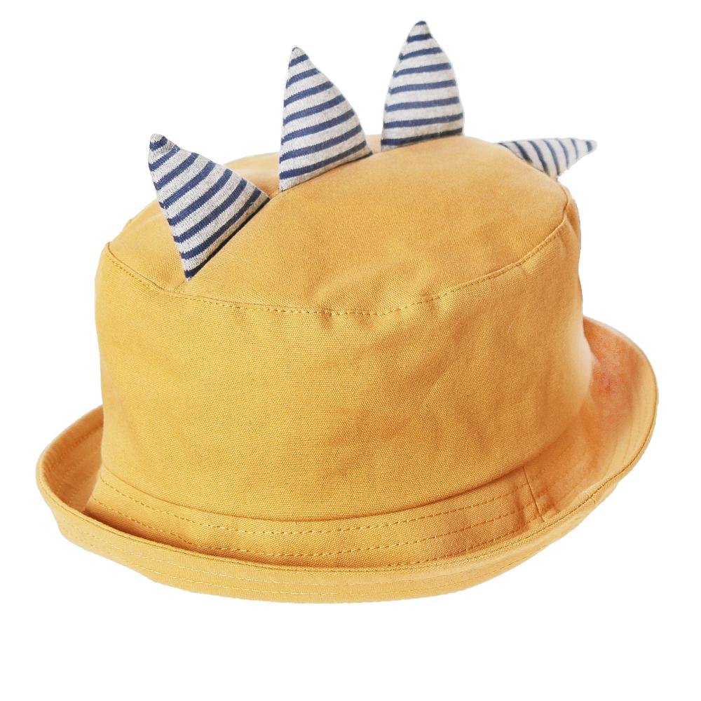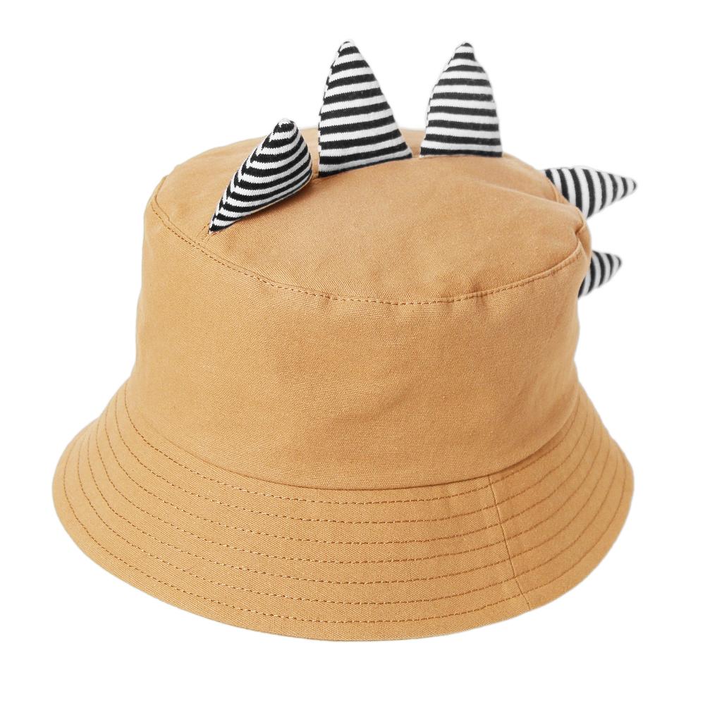 恐竜のツノがインパクト大なキッズ用ハットです。ポップなボーダー柄のツノが目を惹くデザイン◎つば先を伸ばしてバケットハットにしても、折ってポークパイハット風にしても可愛いアイテムです。裏側にサイズ調節可能なテープ付きなので、ご自身のサイズ感に合わせて頂けます。