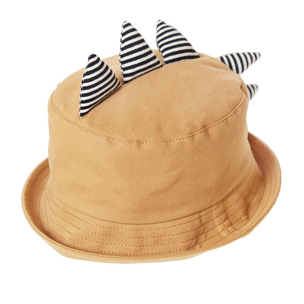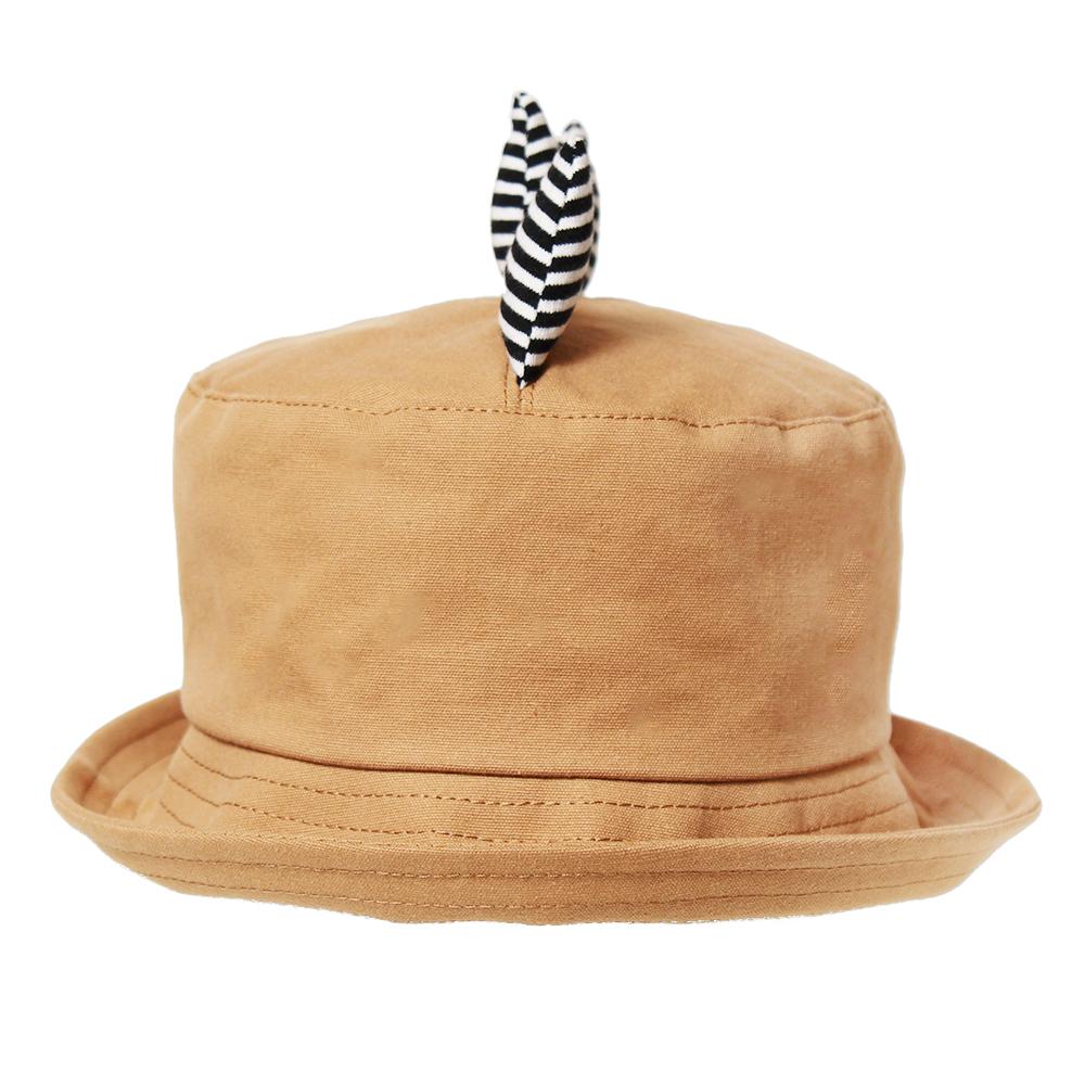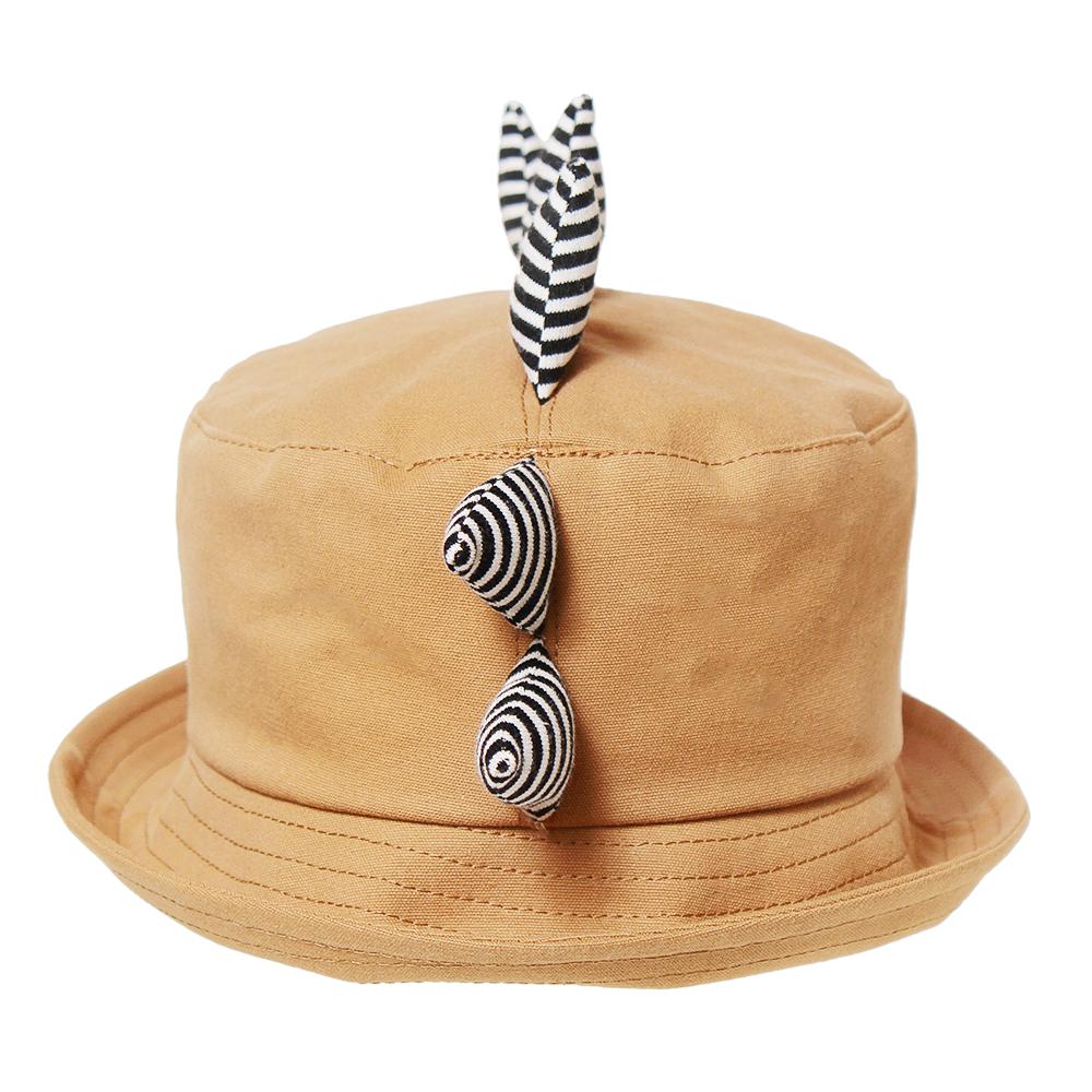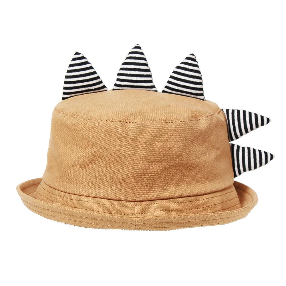 恐竜のツノがインパクト大なキッズ用ハットです。ポップなボーダー柄のツノが目を惹くデザイン◎つば先を伸ばしてバケットハットにしても、折ってポークパイハット風にしても可愛いアイテムです。裏側にサイズ調節可能なテープ付きなので、ご自身のサイズ感に合わせて頂けます。