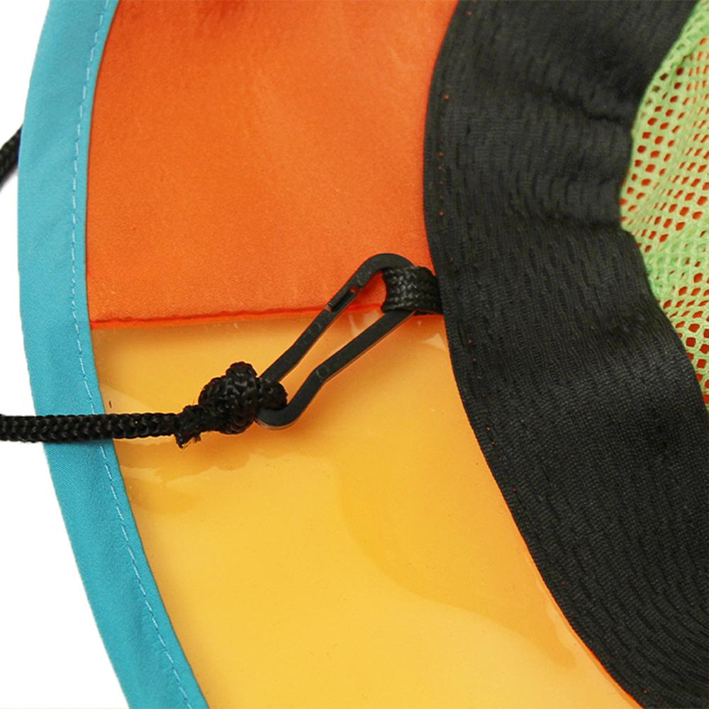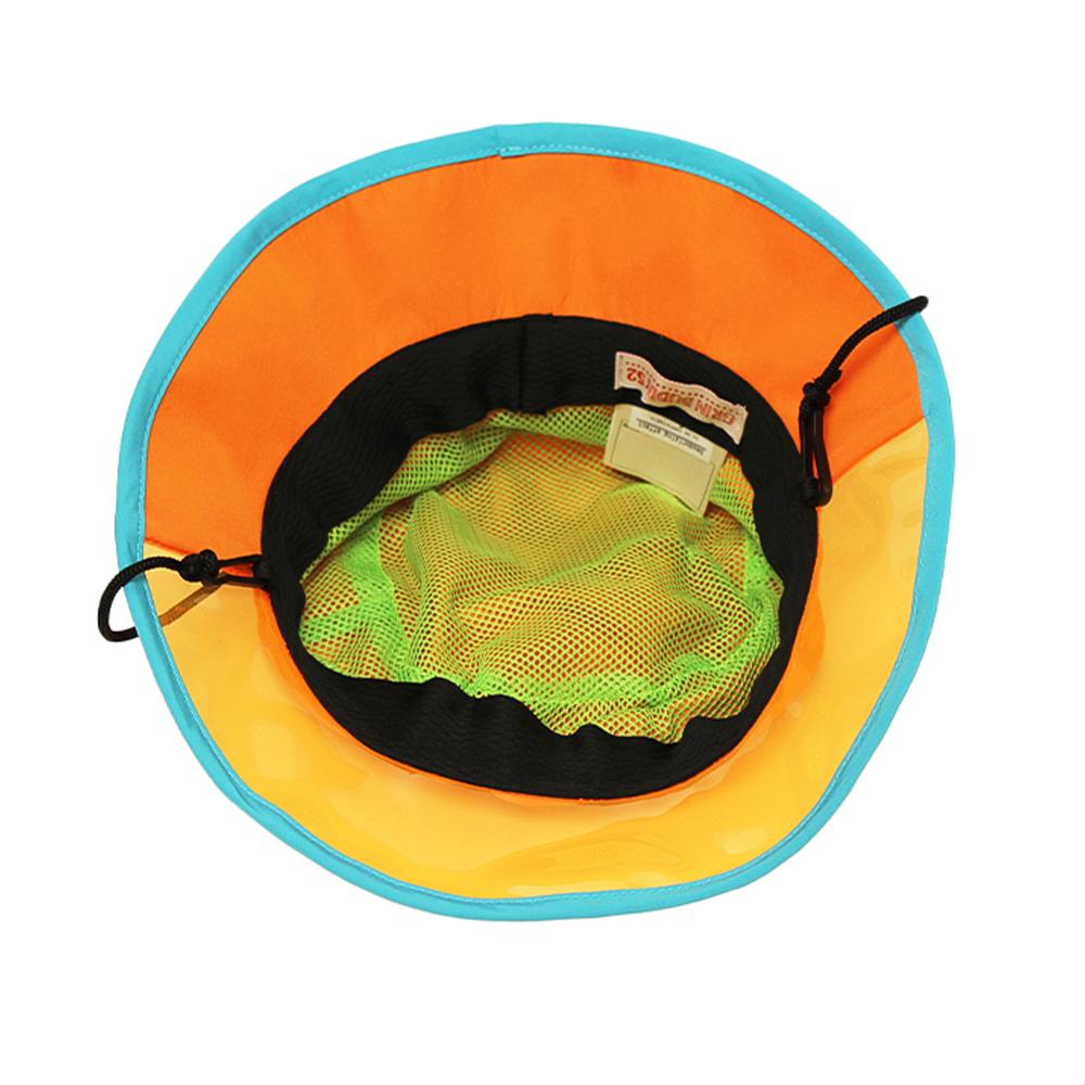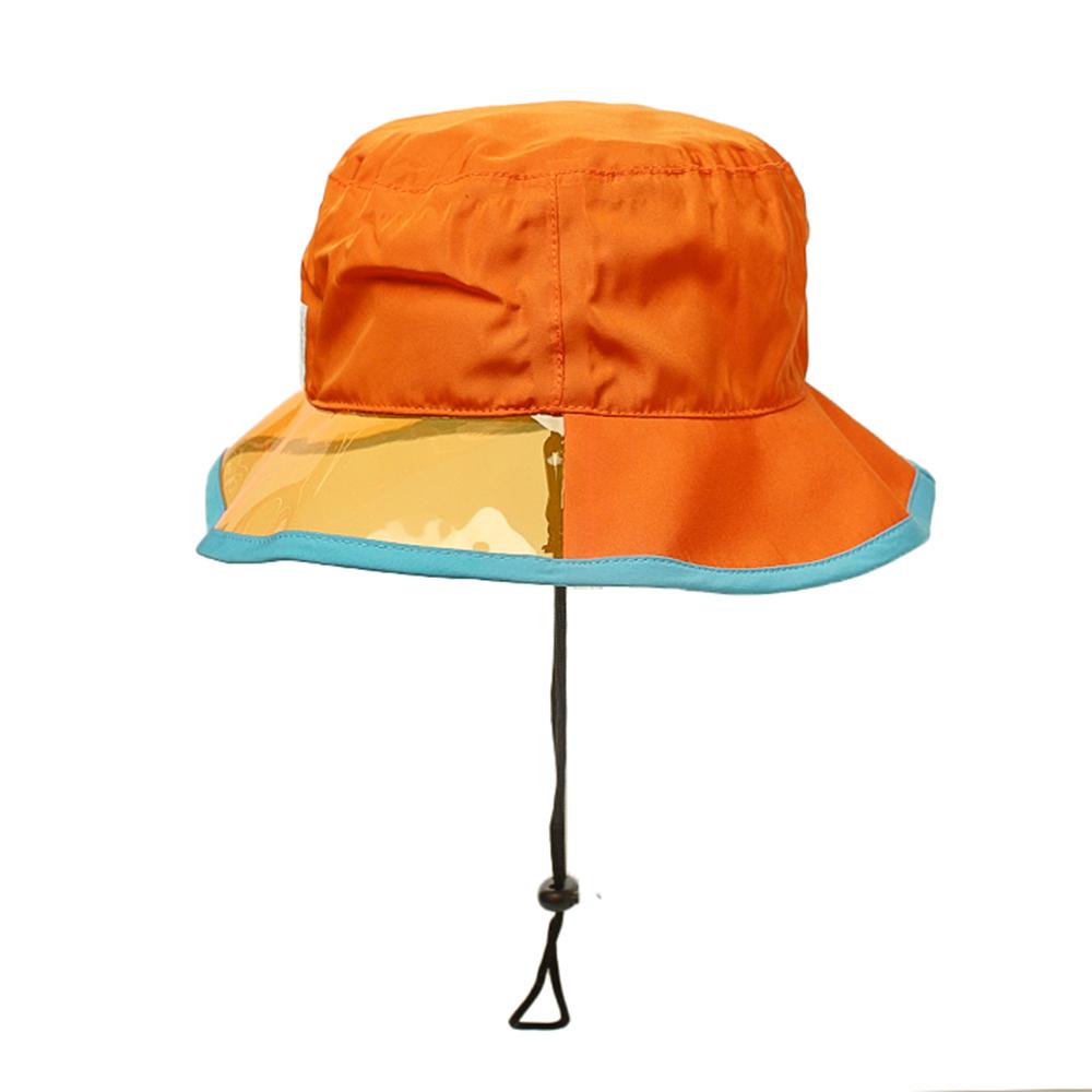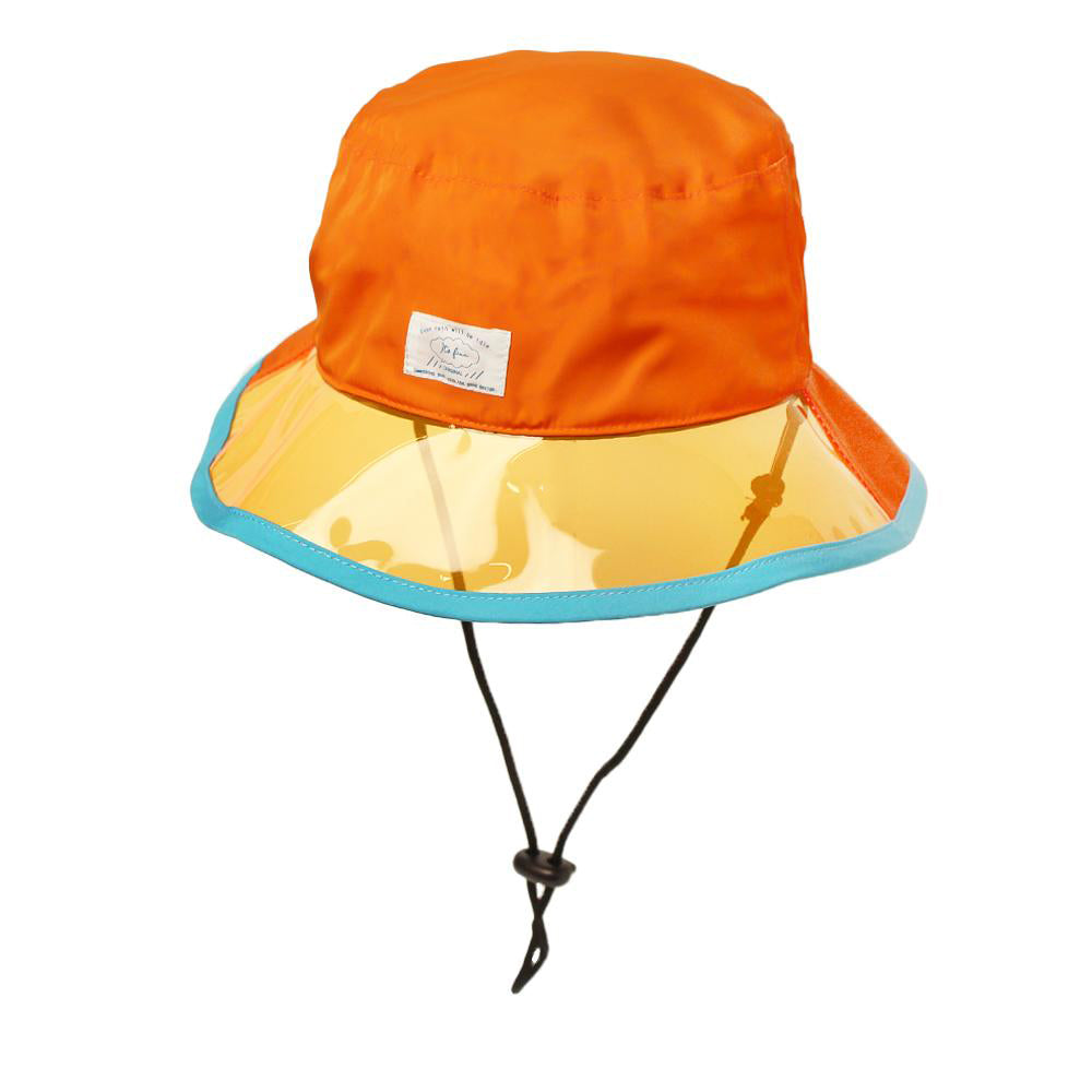 撥水加工を施した機能性に優れた、キッズ用PVCハット。前つば部分が半透明になっている可愛いデザインがポイントです。柔らかい素材なので、折りたたんで持ち歩きにも便利◎雨の日やアウトドアシーンに大活躍するアイテムです。取り外しのできるあご紐付きで、裏側のテープでサイズ調節も可能。消臭、抗菌効果、吸水速乾機能のあるパーツを使用しているので、快適にご使用いただけます。