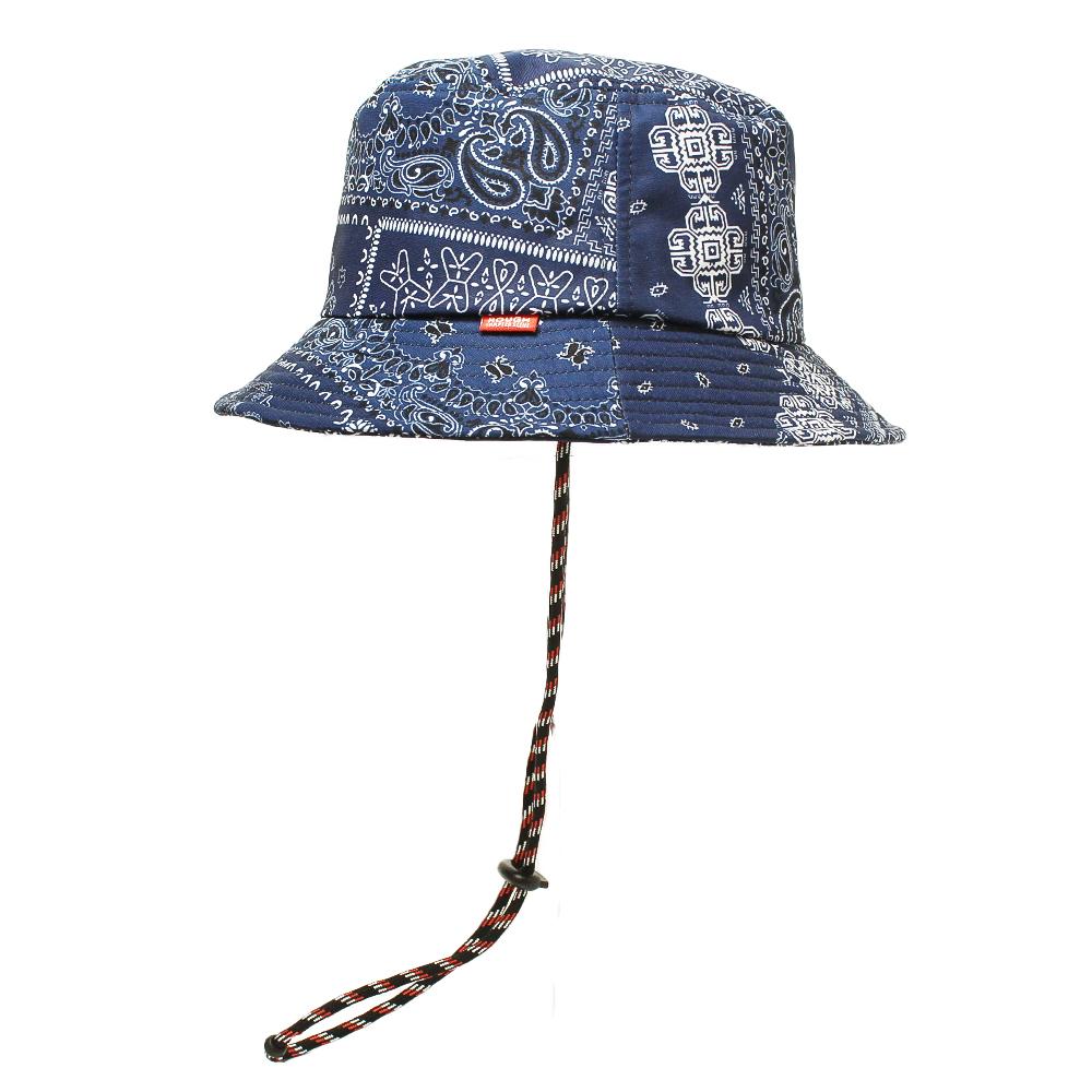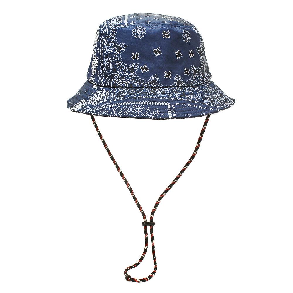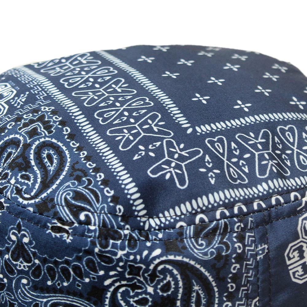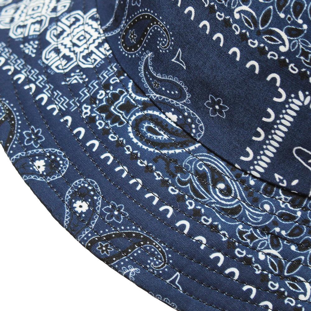 お洒落なペイズリー柄の撥水バケットハット。さり気ないサイドタグがアクセントに。