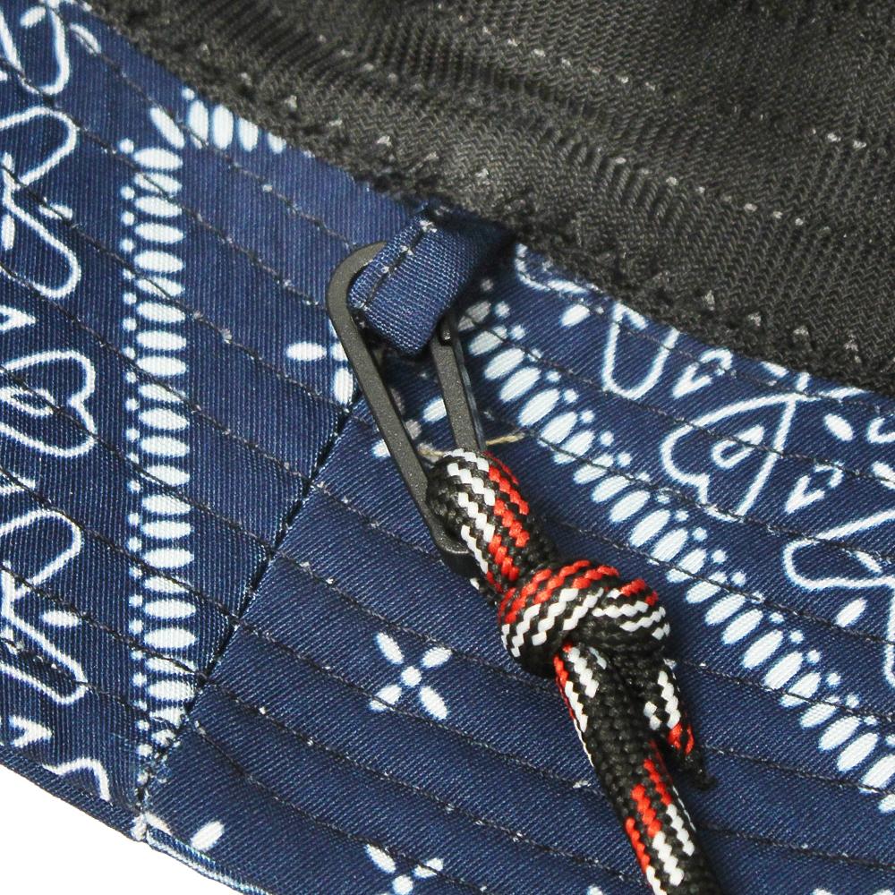 柔らかい素材の為、小さく折りたたんで持ち運びにも便利なアイテムです。撥水加工&取り外し可能なあご紐付きなので、夏のフェスやアウトドアシーンにもピッタリ◎裏側にサイズ調節可能なテープ付きなので、ご自身のサイズ感に合わせて頂けます。