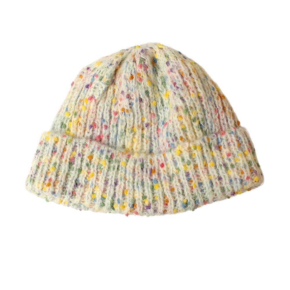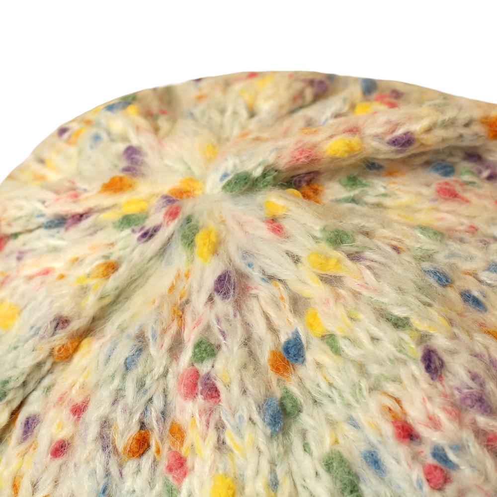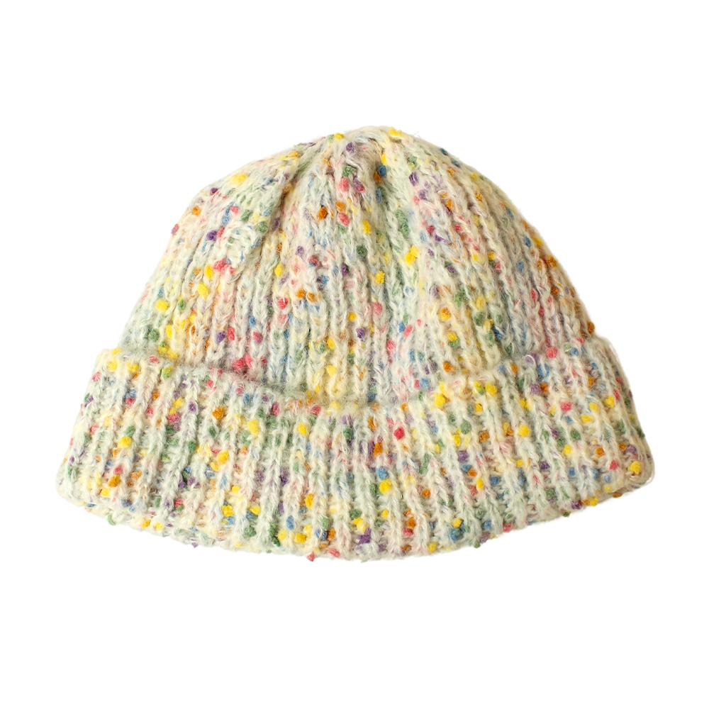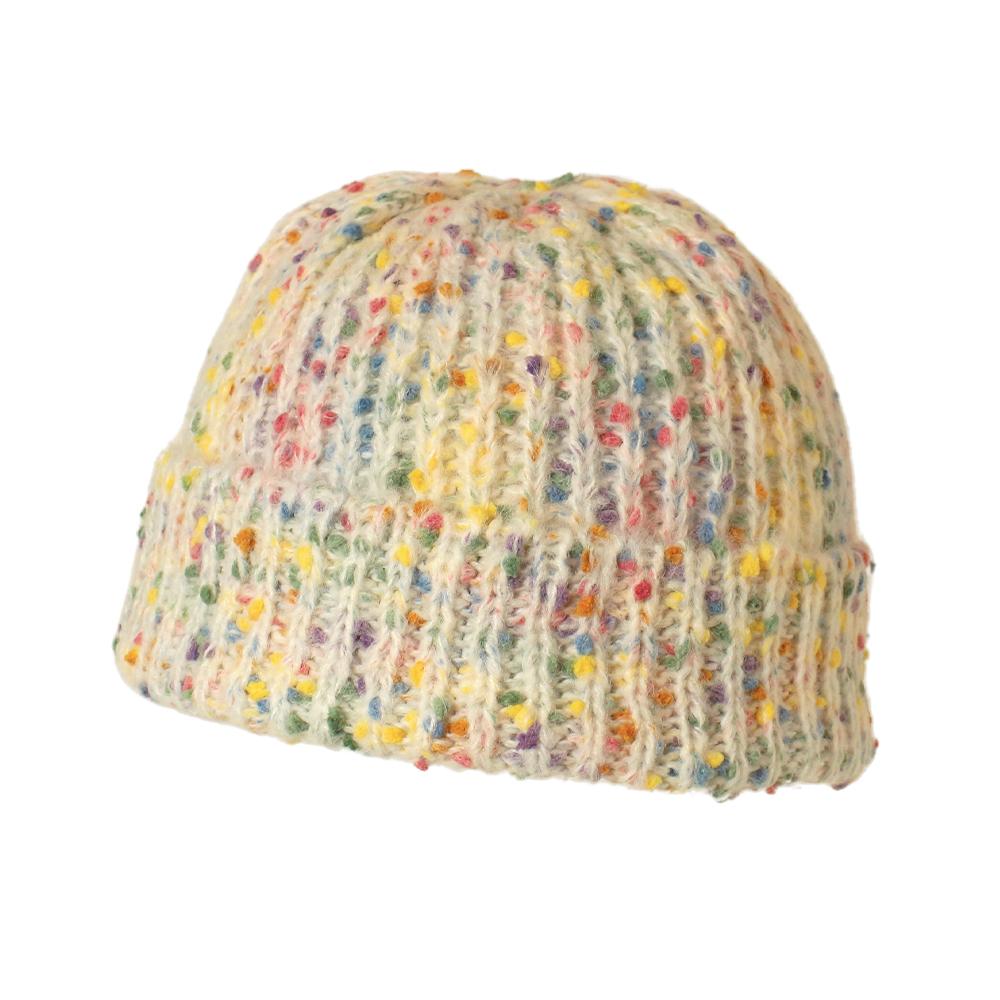 キャンディのようにつぶつぶ&カラフルなデザインがかわいいニット帽。カジュアルからガーリーまで、幅広いスタイルと相性抜群です。柔らかく伸縮性があり被り心地がとても心地よいニット帽です。同じシリーズのバケットハット(品番:103300)もありますのでお揃いやシリーズ違いで被っていただくこともおすすめです。