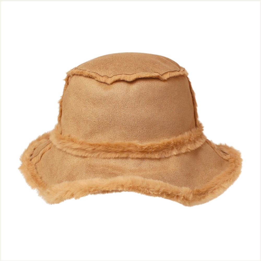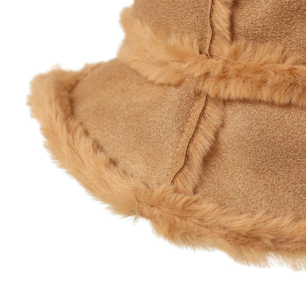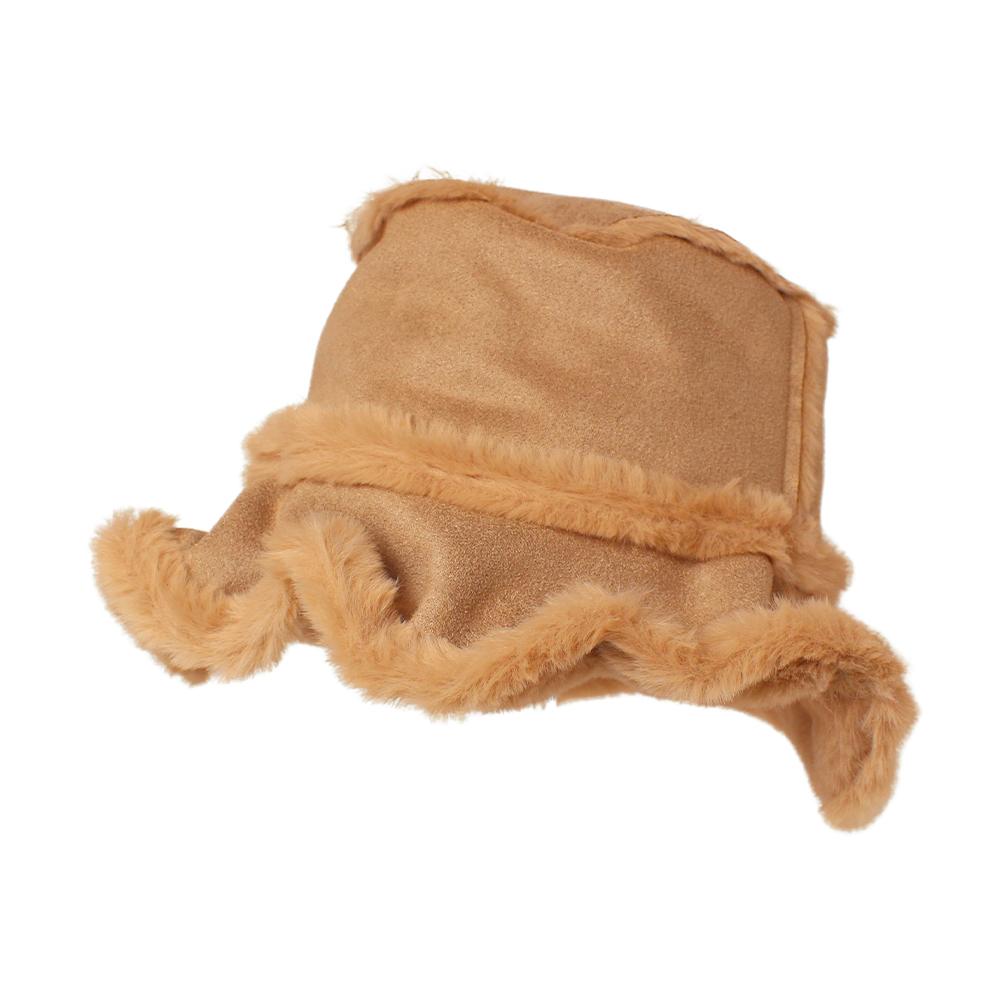 フェイクムートン生地にファーの縁取りが施されたバケットハットです。大きめなシルエットで特徴的なデザインはコーデのアクセントに抜群です。つば先はワイヤーが入っているので、お好みの形に変えていただけます。また、こちらはリバーシブル仕様となっておりますので裏返していただくとフェイクファーのバケットハットになりますので、イメージの違った印象をお楽しみいただけます。