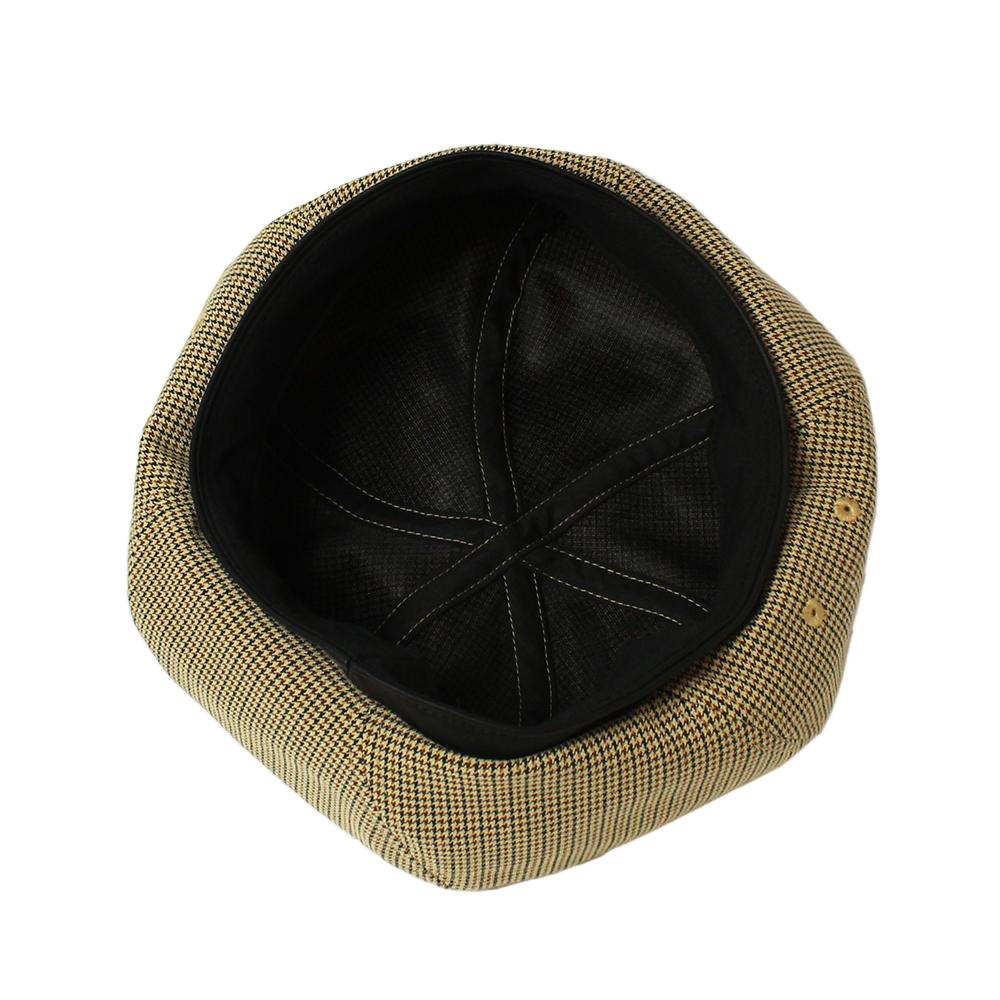 小さめの千鳥チェック柄がクラシカルな印象で高級感があります。キレイ目スタイルにもカジュアルスタイルにも合うベレー帽です◎被り口部分にはフェイクレザーを使用していますので、あえて見せて被るとコーデが引き締まるアクセントになります。シンプルなコーデにワンポイントと柄物を取り入れておしゃれ度UP!